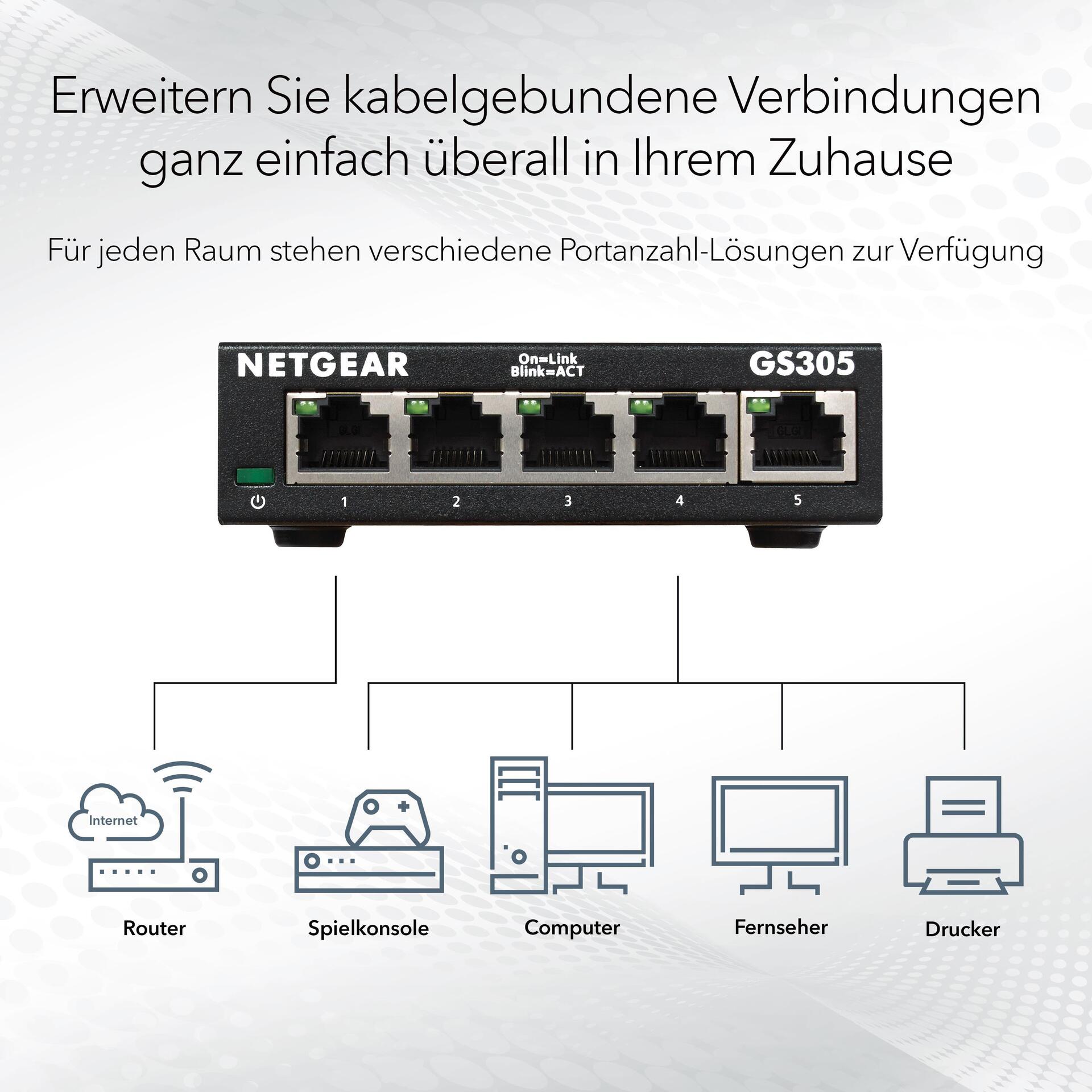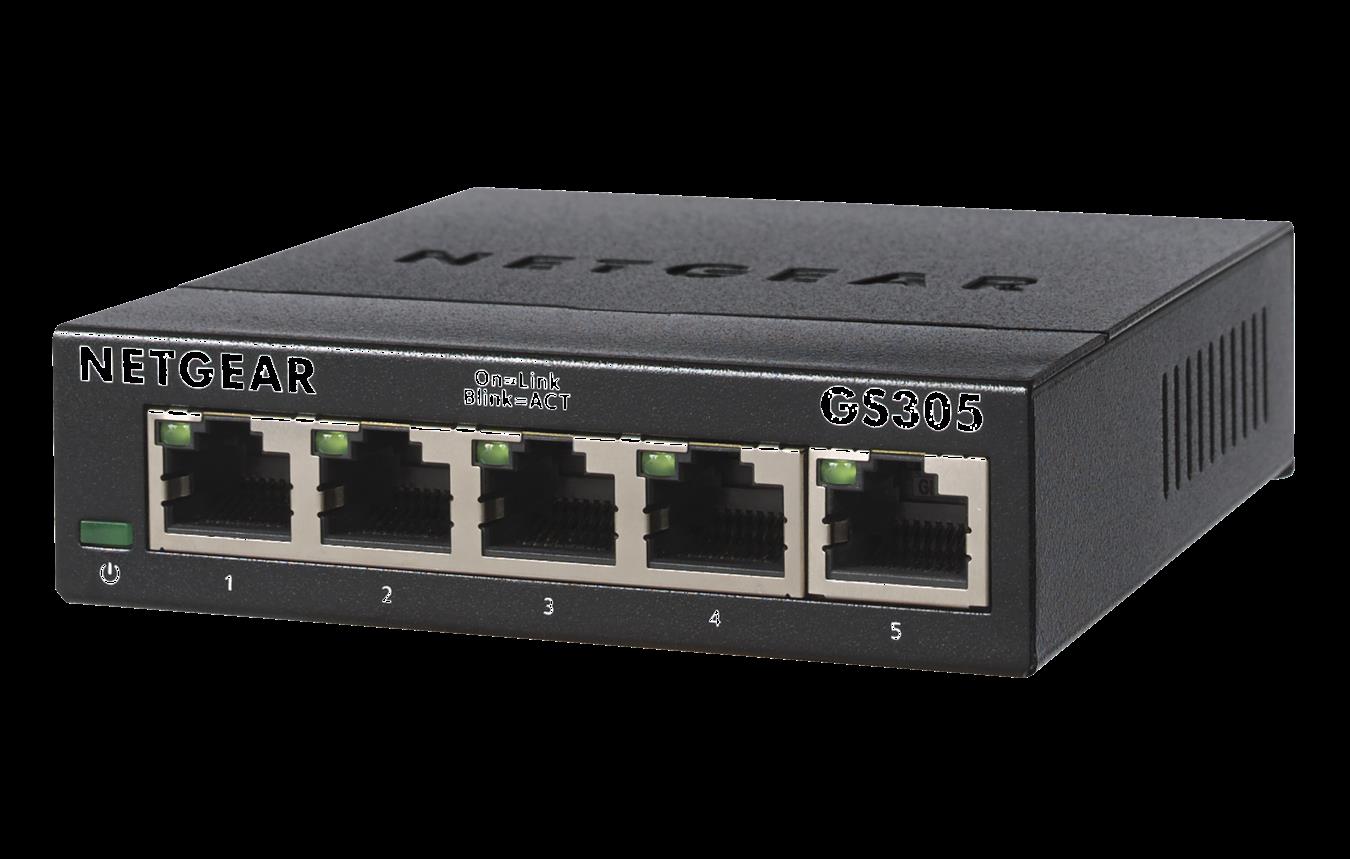 Netgear Switch / 5-Port Gigabit unmanaged Switch für SMB Metallgehäuse, Desktop, lüfterlos, Metallports (GS305-300PES)