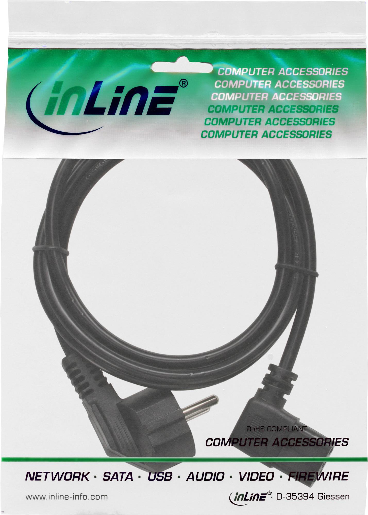 Netzkabel - Schutzkontakt gewinkelt auf Kaltgerätestecker C13 rechts abgewinkelt - 0,3m - schwarz (16752G)