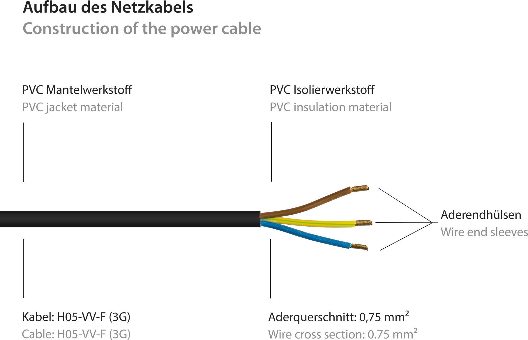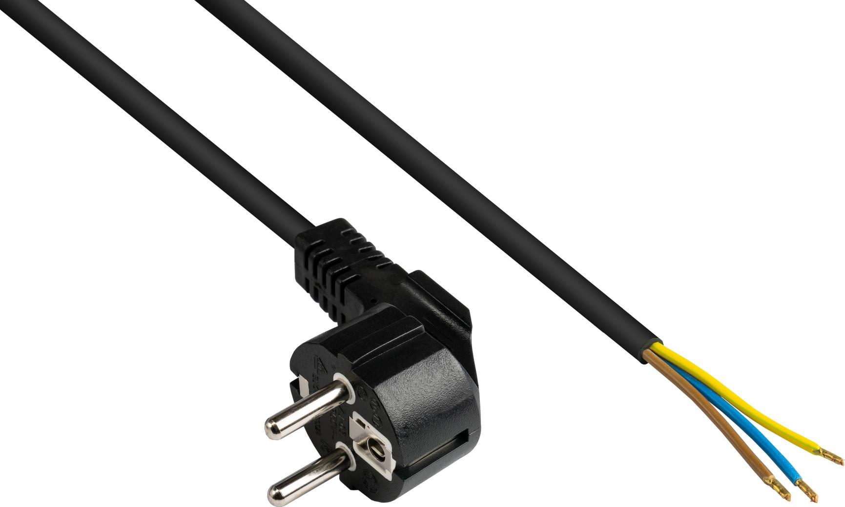 Netzkabel Schutzkontakt-Stecker Typ E+F (CEE 7/7, gewinkelt) an abisolierte Enden, schwarz, 0,75 mm², 1,5 m, Good Connections® (P0185-S015)