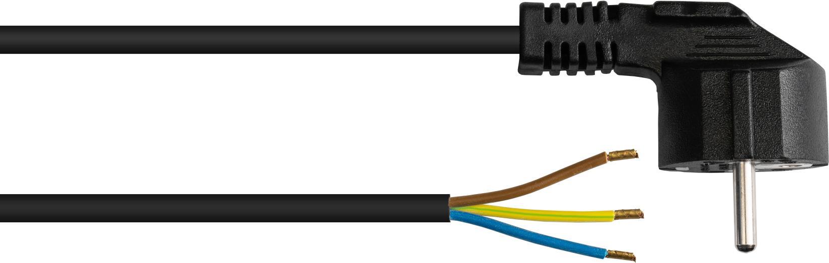 Netzkabel Schutzkontakt-Stecker Typ E+F (CEE 7/7, gewinkelt) an abisolierte Enden, schwarz, 0,75 mm², 1,5 ...