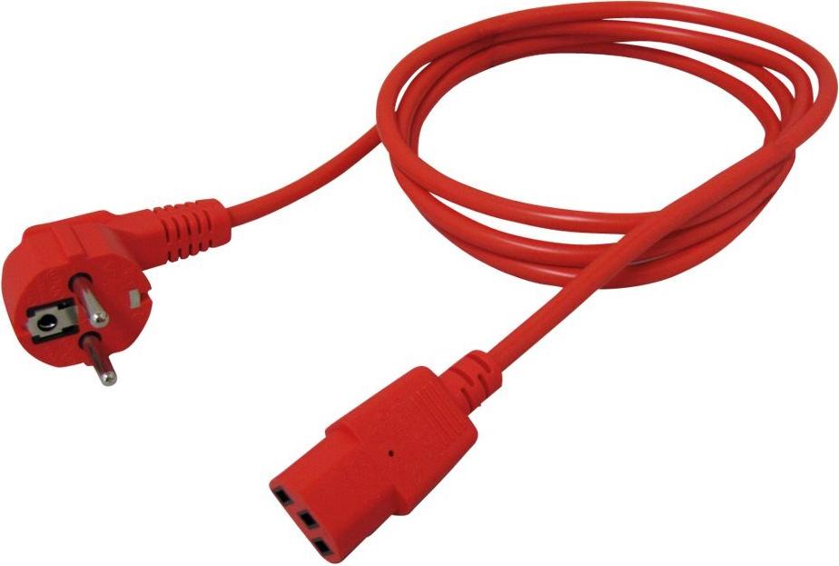 ROLINE - Stromkabel - CEE 7/7 (M) gewinkelt bis IEC 60320 C13 gerade - Wechselstrom 250 V - 10 A - 1.8 m - Rot - Deutschland (19.08.1010)