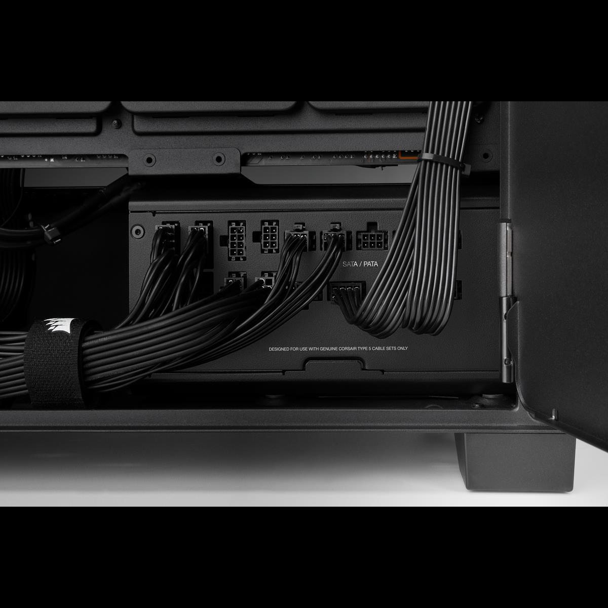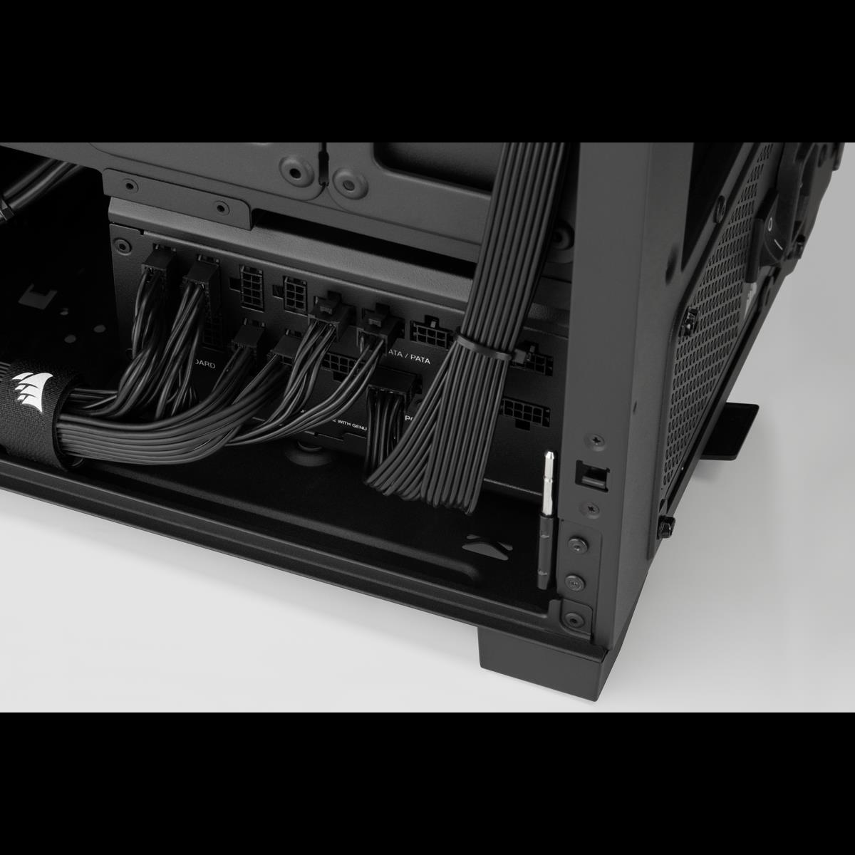 Die vollmodularen Netzteile der CORSAIR RMx SHIFT Series verfügen über eine revolutionäre zum Patent angemeldete Kabelschnittstelle an der Seite, sodass alle Anschlüsse bequem zu erreichen sind, und bieten außergewöhnlich effiziente 80 PLUS Gold-Leistung.