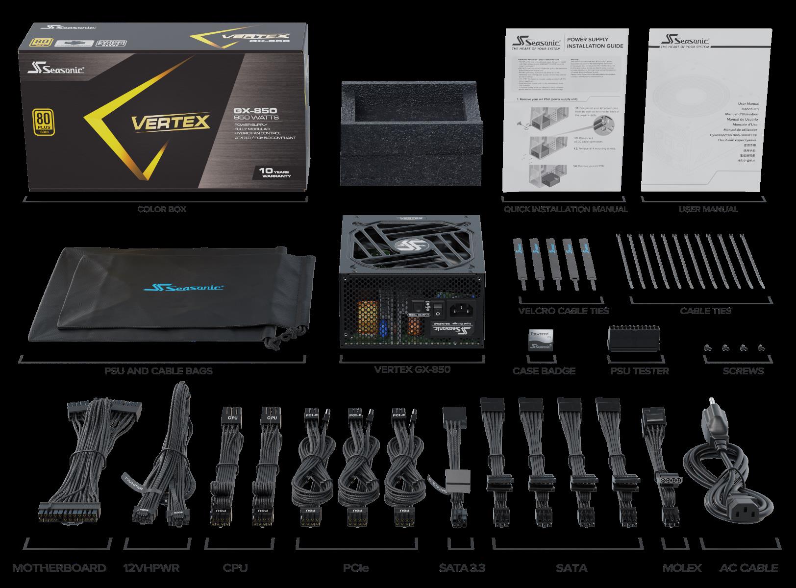 Die Geräte der VERTEX-Serie liefern 850 Watt echte Leistung in den Effizienzklassen Platinum und Gold, mit all den besten Eigenschaften, die Sie von einem Seasonic-Netzteil erwarten können.