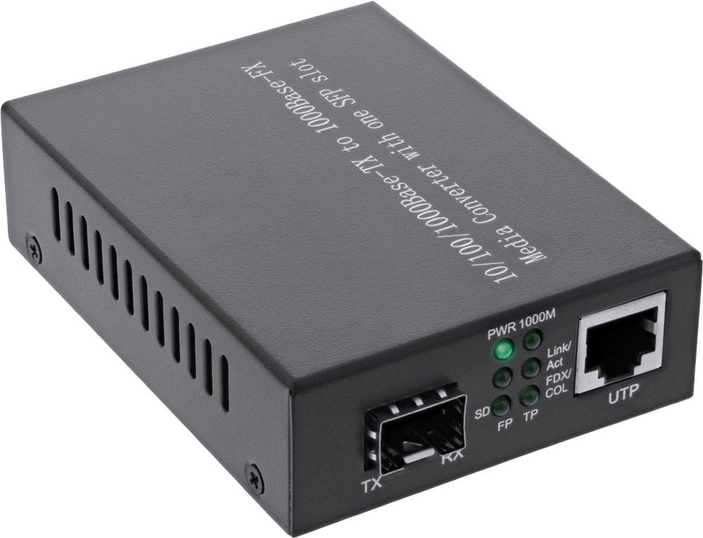 Der InLine® Netzwerk Media Konverter 10/100/1000Mb/s TP zu SFP LWL (für LC Duplex), MM, 550m ist für die Migration oder die Erweiterung von vorhandenen Netzwerken zu geringen Kosten gedacht. Der Konverter entspricht unterschiedlichen IEEE 802.3 Ethernet Standards und verfügt über einen RJ45 10/100/1000Base-T Port sowie einen LWL LC Duplex Modulslot. Er bietet LWL-Verbindungen zu weit entfernten Netzwerksegmenten und eignet sich auch hervorragend zur Anbindung von Gebäuden. Mit dem Konverter besteht die Möglichkeit, optische Netzwerke über Distanzen von bis zu 550m zu verbinden. Dies kann erreicht werden, indem beide Geräte direkt über LWL angeschlossen werden. Systemadministratoren können die Konverter überall im Netzwerk einsetzen, ohne Änderungen an der bestehenden Verkabelungsstruktur durchzuführen. Die kompakte Größe erlaubt die Anbringung in jeder Desktop-Umgebung.• Multimode TX 850nm• Entspricht den Standards IEEE802.3 10Base-T, IEEE802.3u 10/100Base-TX/X, IEEE802.1q, IEEE802.1p QoS, IEEE802.1d, IEEE802.3z, IEEE802.3ab• Unterstützt Auto MDI/MDI-X• Automatische Aushandlung von Voll- und Halbduplex Modus• 10/100/1000Base-T zu 1000Base-FX• Status LEDs zur Anzeige der Stromversorgung sowie Verbindung und Aktivität der Ports• Link Fault Pass Through (LFP)-Funktion zur einfacheren Wartung des Netzwerks• Externes Schaltnetzteil 5V DC/1A