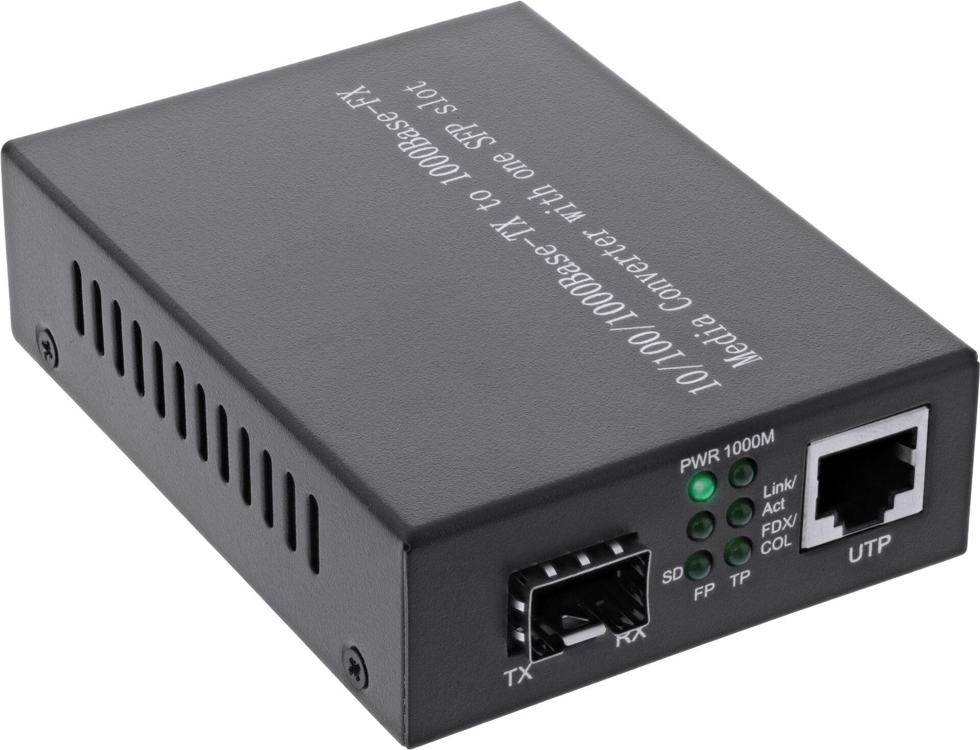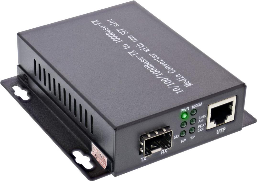 Der InLine® Netzwerk Media Konverter 10/100/1000Mb/s TP zu SFP LWL (für LC Duplex), SM, 20km ist für die Migration oder die Erweiterung von vorhandenen Netzwerken zu geringen Kosten gedacht. Der Konverter entspricht unterschiedlichen IEEE 802.3 Ethernet Standards und verfügt über einen RJ45 10/100/1000Base-T Port sowie einen LWL LC Duplex Modulslot. Er bietet LWL-Verbindungen zu weit entfernten Netzwerksegmenten und eignet sich auch hervorragend zur Anbindung von Gebäuden. Mit dem Konverter besteht die Möglichkeit, optische Netzwerke über Distanzen von bis zu 20km zu verbinden. Dies kann erreicht werden, indem beide Geräte direkt über LWL angeschlossen werden. Systemadministratoren können die Konverter überall im Netzwerk einsetzen, ohne Änderungen an der bestehenden Verkabelungsstruktur durchzuführen. Die kompakte Größe erlaubt die Anbringung in jeder Desktop-Umgebung.• Singlemode TX 1310nm• Entspricht den Standards IEEE802.3 10Base-T, IEEE802.3u 10/100Base-TX/X, IEEE802.1q, IEEE802.1p QoS, IEEE802.1d, IEEE802.3z, IEEE802.3ab• Unterstützt Auto MDI/MDI-X• Automatische Aushandlung von Voll- und Halbduplex Modus• 10/100/1000Base-T zu 1000Base-FX• Status LEDs zur Anzeige der Stromversorgung sowie Verbindung und Aktivität der Ports• Link Fault Pass Through (LFP)-Funktion zur einfacheren Wartung des Netzwerks• Externes Schaltnetzteil 5V DC/1A