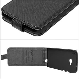 Nevox RELINO Case for HTC One (M7) FLIP Tasche, black-grey, Blister (4250686401530)