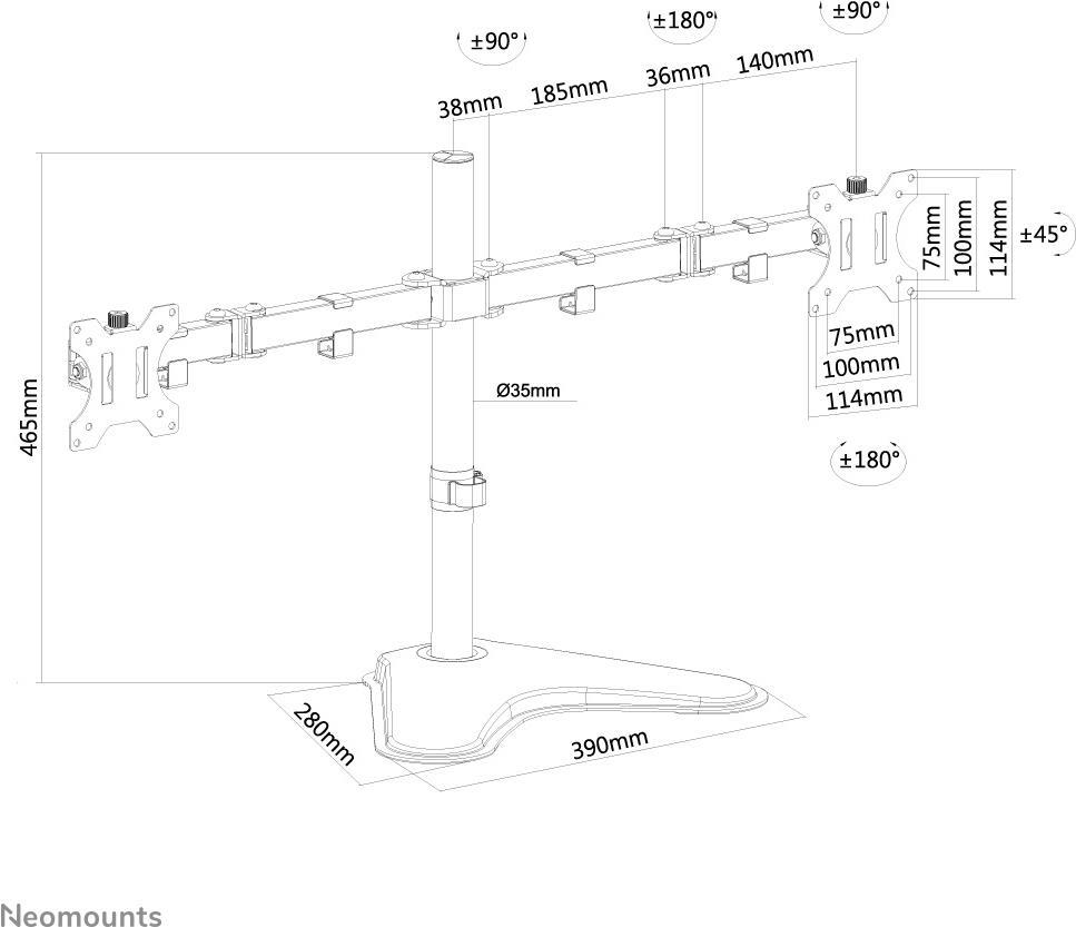 Neomounts FPMA-D550DDBLACK 2fach Monitor-Tischhalterung 25,4 cm (10) - 81,3 cm (32) Schwenkbar, Rotierbar, Neigbar, Stand Schwarz