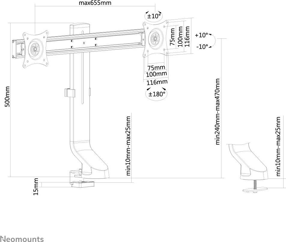 • Neomounts FPMA-D860DBLACK 2fach Monitor-Tischhalterung 25,4 cm (10) - 68,6 cm (27) Neigbar, Rotierbar, Schwenkbar Schwarz