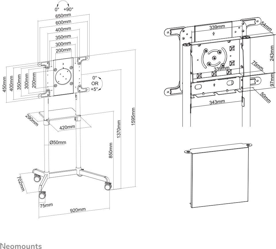 • Neomounts NS-M1250BLACK TV-Rollwagen 94,0 cm (37) - 177,8 cm (70) Neigbar, Rotierbar