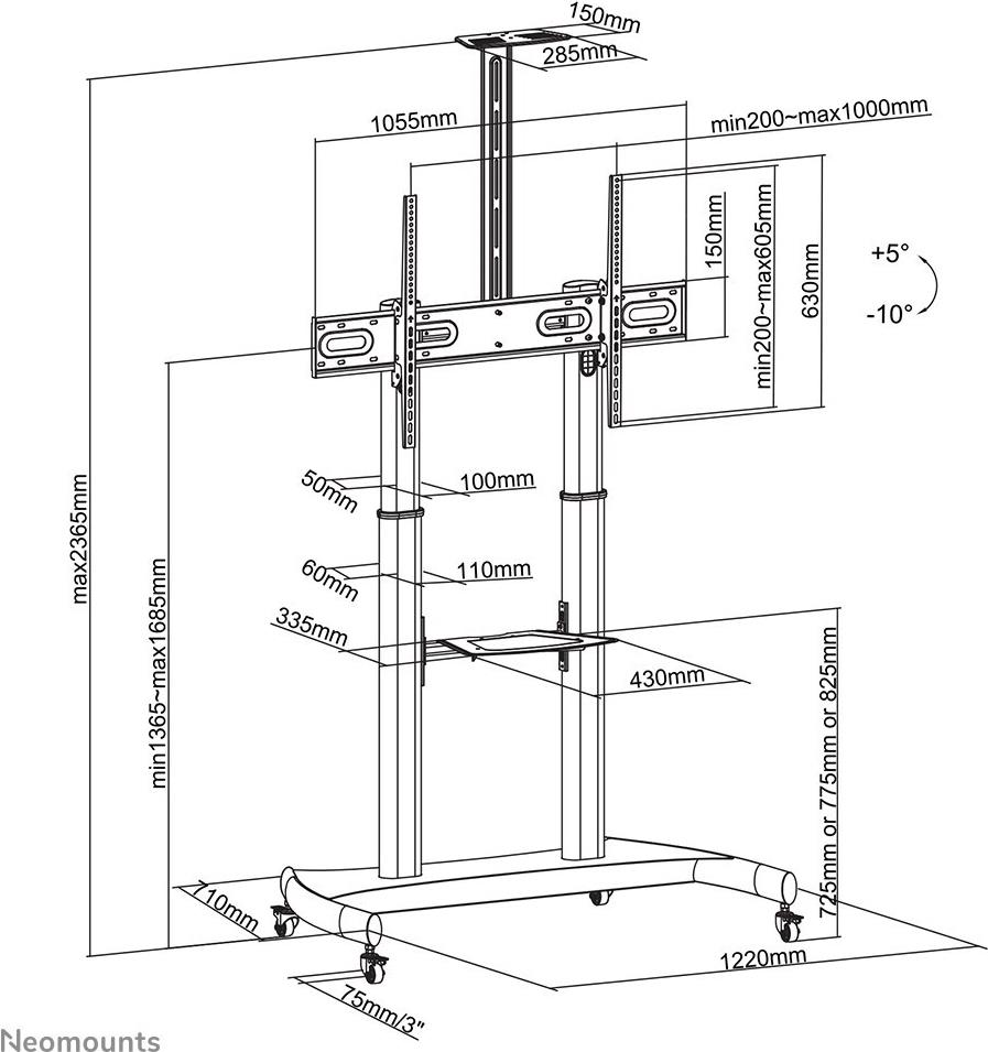 Neomounts PLASMA-M1950E TV-Rollwagen Höhenverstellbar 152,4 cm (60) - 254,0 cm (100) Neigbar