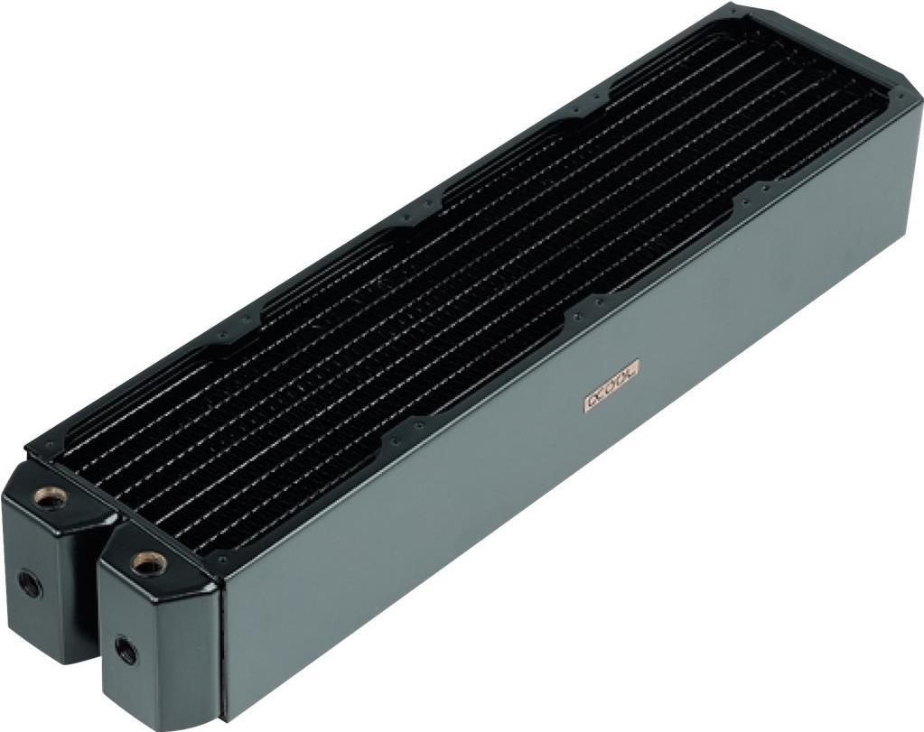 Der Finnenabstand wurde so gewählt, dass der Radiator optimale Kühlleistung bereits mit langsam und mittelschnell drehenden Lüftern erreicht. Dies ist nicht nur angenehm in Hinsicht auf Geräuschkulisse, sondern schränkt auch bei der Lüfterwahl nicht ein.
