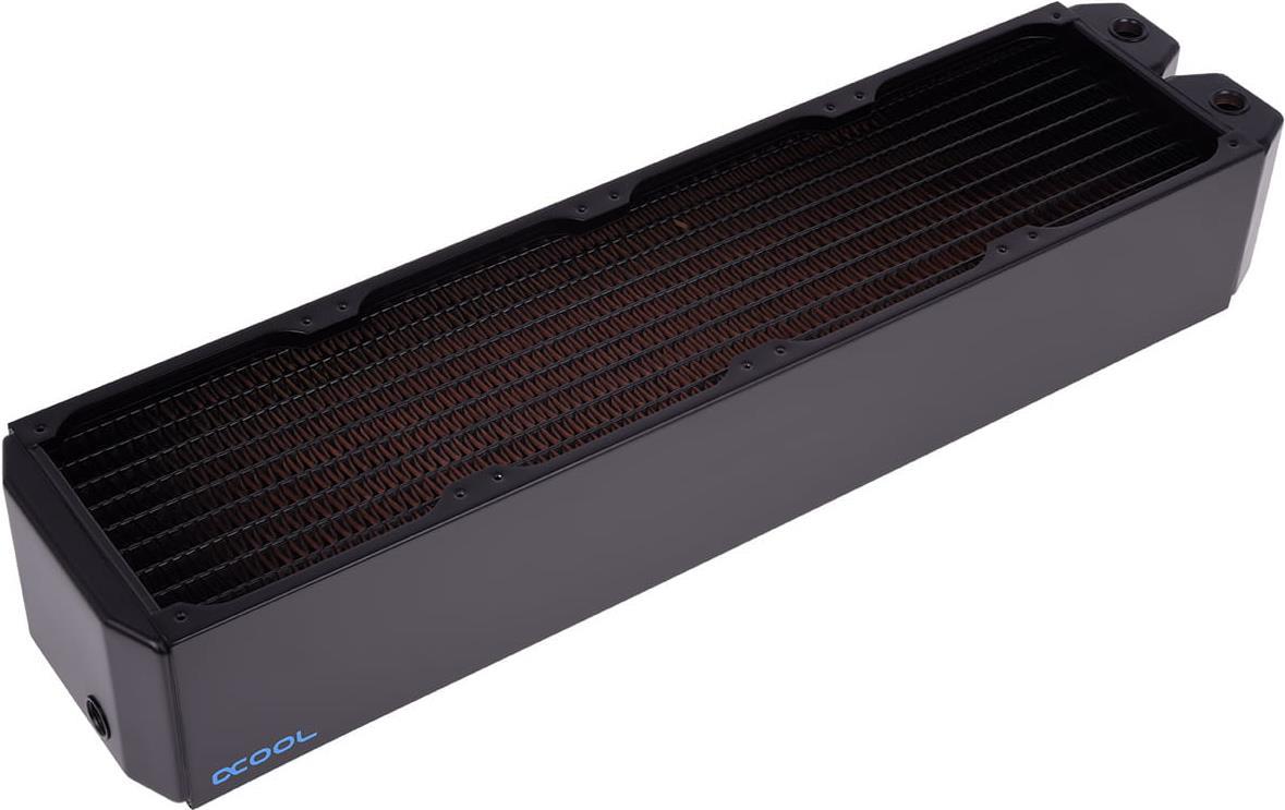 Alphacool ist seit Jahren in der Szene immer wieder ein Impulsgeber bei der Entwicklung und Verbesserung von Radiatoren. So sind diese Modelle mit die ersten Radiatoren, welche das Prädikat „Full Copper“ wirklich verdient haben! Alle Hauptelemente, nicht nur die Finnen und Kanäle, sondern auch die Vorkammern sind aus Kupfer. Dies bringt schon materialbedingt ein Leistungsplus, wo andere Radiatoren auf der Strecke bleiben. Der innere Aufbau ist konstruktiv auf Augenhöhe mit den Radiatoren anderer Hersteller und getrennte Vorkammern geben den Weg der Kühlflüssigkeit klar vor. Ein hoher Durchfluss erhöht die Kühlleistung im kompletten System. Eine flache Endkammer lässt auch bei der Montage mehr Freiraum, da die Gesamtlänge so geringer ausfällt.