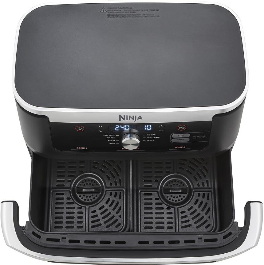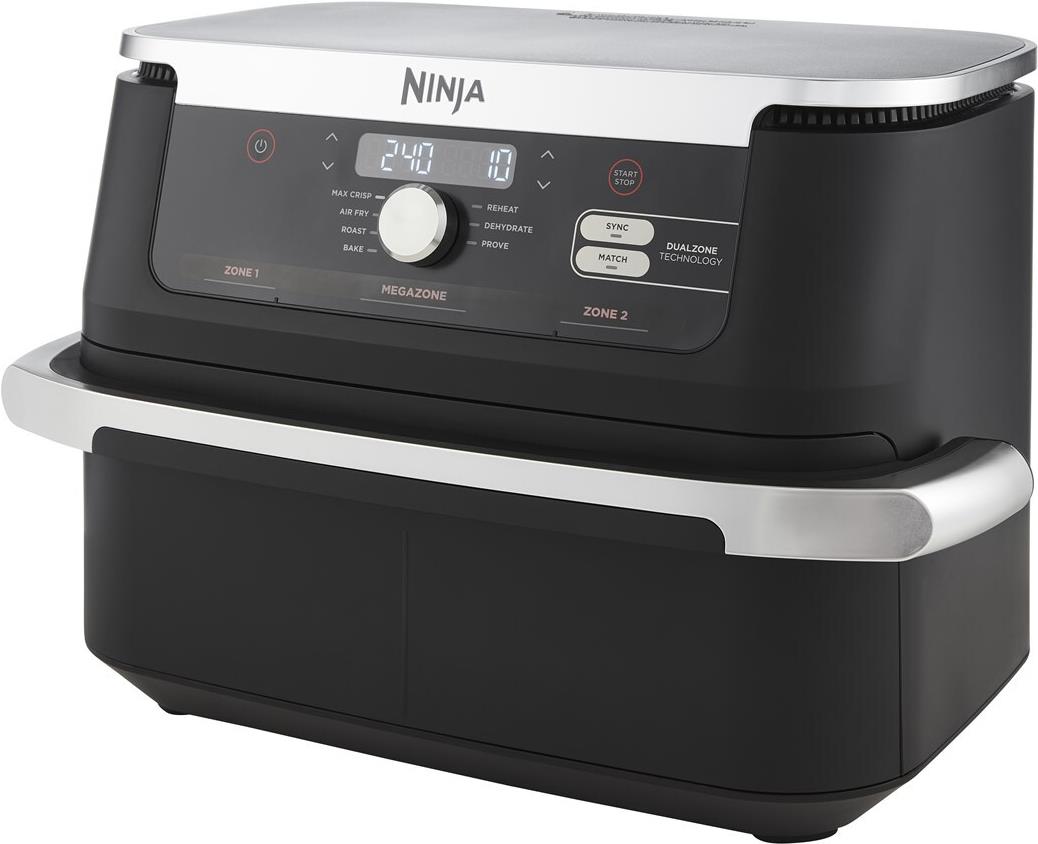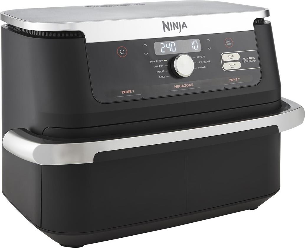 Die neue Ninja Foodi FlexDrawer, die Heißluftfritteuse mit extra großem Fassungsvermögen, passt sich jeder Mahlzeit an.Garen Sie größere Speisen in der 10,4-Liter-MegaZone oder teilen Sie sie in zwei unabhängige Garzonen auf, um die Kochfunktionen mit der Dual-Zone-Technologie von Ninja zu kombinieren.Bringen Sie Ihre Rezepte aufs nächste NiveauEs gibt viele Gründe, in einer Heißluftfritteuse zu kochen, vom gesünderen Frittieren bis zum geringeren Energieverbrauch als bei einem Backofen*. Aber wenn Sie für viele Personen kochen, kann es manchmal schwierig sein, alles in einem Gerät unterzubringen.Mit der extragroßen 10,4-Liter-MegaZone haben Sie jetzt viel Platz für größere Speisen, die Sie normalerweise im Backofen zubereiten würden. Von einem Brathähnchen mit knusprigen Kartoffeln bis hin zu einer vorbereiteten Lasagne in Familiengröße. Das Gerät ist groß genug für eine Brat- oder Auflaufform und ermöglicht die Zubereitung von Lachs und Süßkartoffeln, geröstetem Gemüse, eine große Portion Brownies und vielem mehr.Sie möchten 2 Gerichte gleichzeitig zubereiten?Dank der Dual Zone-Technologie können Sie mit dem Trenner die MegaZone in 2 unabhängige Garzonen unterteilen. Garen Sie 2 Speisen auf 2 unterschiedliche Arten - und beide sind gleichzeitig fertig! Kombinieren Sie Zubereitungsfunktionen, Zeiten und Temperaturen in jeder Zone und die SYNC-Funktion sorgt dafür, dass beide gleichzeitig fertig werden. Perfekt, um frisch zubereitete Hauptgerichte und Beilagen zusammen zu servieren oder zwei unterschiedliche Geschmäcker zu bedienen.Mit der MATCH-Funktion können Sie außerdem die gleichen Einstellungen für beide Garzonen übernehmen.In jede 5,2-Liter-Garzone passen bis zu 2 kg Hähnchen oder bis zu 1,5 kg Pommes frites.Schnelles Zubereiten köstlicher Mahlzeiten für 8+ PersonenBis zu 65 % schneller als ein Umluftofen**: Eine komplette Mahlzeit zubereitet in weniger als der Hälfte der Zeit.Perfekt, um einen großen Haushalt zu ernähren, um für Freunde und Familie zu kochen, denn sie bietet genug Platz für 8+ Personen - oder machen Sie einfach genug für sich selbst!Mehr als eine Heißluftfritteuse mit 7 Zubereitungsfunktionen:- HEIßLUFT-FRITTIEREN Sie mit wenig bis gar keinem Öl und genießen Sie perfekt knusprige Ergebnisse - mit bis zu 75 % weniger Fett als bei herkömmlichen Frittiermethoden***. Perfekt für alles, von hausgemachten Wedges, knuspriges Hähnchen, Teriyaki-Lachs und frischen Brokkoliröschen bis hin zu Samosas, Frittatas und goldbraun getoasteten Sandwiches.- MAX CRISP zirkuliert Temperaturen von 240 °C, um gefrorene Lebensmittel in Minutenschnelle gleichmäßig zu garen und knusprig zu machen. Perfekt für Pommes frites, Chicken Wings, Nuggets und andere Tiefkühlgerichte.- BRATEN Sie ein ganzes Huhn, eine Lammkeule oder ein veganes Schnitzel zusammen mit Bratkartoffeln für ein Familientreffen. Außerdem können Sie Ihre Rezepte ganz einfach selbst zusammenstellen - wählen Sie ein beliebiges Protein, Gemüse und Gewürze, um Ihr eigenes MegaZone-Meisterwerk zu kreieren.- BACKEN Sie alles, von Kuchen, Brownie bis hin zu selbst gebackenem Brot und Torten.- AUFWÄRMEN von Resten, damit sie wieder knusprig werden wie frisch aus dem Ofen.- DÖRREN Sie Zutaten bei niedriger Hitze, um getrocknete Fruchtsnacks, Gemüsechips, Dörrfleisch, selbstgemachte getrocknete Kräuter und Garnierungen herzustellen.- GAREN Sie Teig, damit er ruhen und aufgehen kann, für gehobenes Backen zu Hause.Einfach zu bedienen.Wählen Sie Ihre Zubereitungsfunktionen, -zeiten und -temperaturen ganz einfach über ein digitales Bedienfeld aus. Diese vielseitige Heißluftfritteuse verfügt über 2 Knusperplatten, die dafür sorgen, dass die heiße Luft unter die Speisen gelangt, um gleichmäßige, knusprige Ergebnisse zu erzielen.Das Gerät schaltet außerdem nach 10 Minuten ohne Interaktion in den energiesparenden Standby-Modus.Mit dem im Lieferumfang Rezeptheft können Sie sofort loslegen.Leicht zu reinigen.Die 10,4-Liter-MegaZone-Schublade, der Trenner und die zwei Knusperplatten sind alle antihaftbeschichtet und für eine einfache Reinigung spülmaschinenfest.*Tests und Berechnungen auf der Grundlage der empfohlenen Garzeit für Würstchen bei Verwendung der Heißluftfrittieren-Funktion im Vergleich zu einem Backofen mit 68 L ""A"" - und 71 L ""A+""-Bewertung.**Getestet im Vergleich zu Fischstäbchen und Würstchen, einschließlich Vorwärmung.***Getestet im Vergleich zu handgeschnittenen, frittierten Pommes frites.