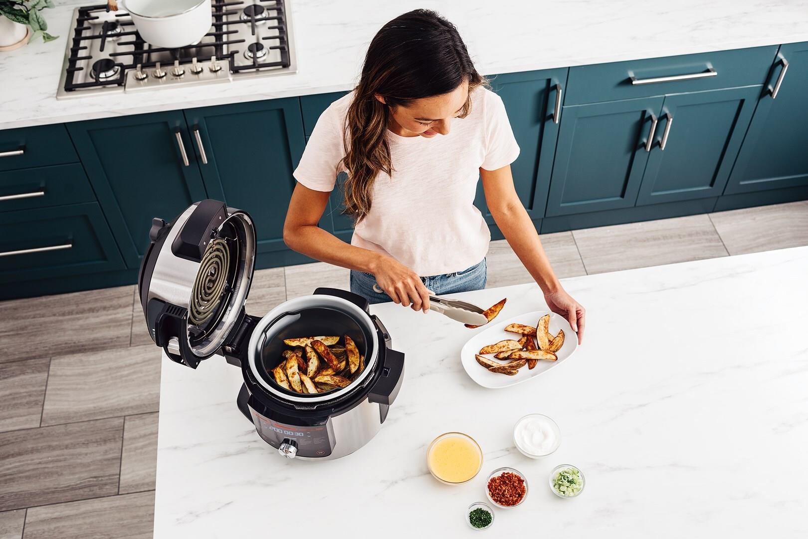 Der Ninja Foodi OL750EU ist ein vielseitiger Multikocher, der die Zubereitung von Mahlzeiten für bis zu 6 Personen vereinfacht. Mit einem Fassungsvermögen von 7,5 Litern bietet er Platz für eine Vielzahl von Gerichten und Garmethoden und eignet sich daher für Familien und Gäste. Dieses Modell verfügt über 14 verschiedene Kochfunktionen, darunter Luftgaren, Druckgaren und langsames Garen, und ermöglicht so kulinarische Kreativität in der Küche.
