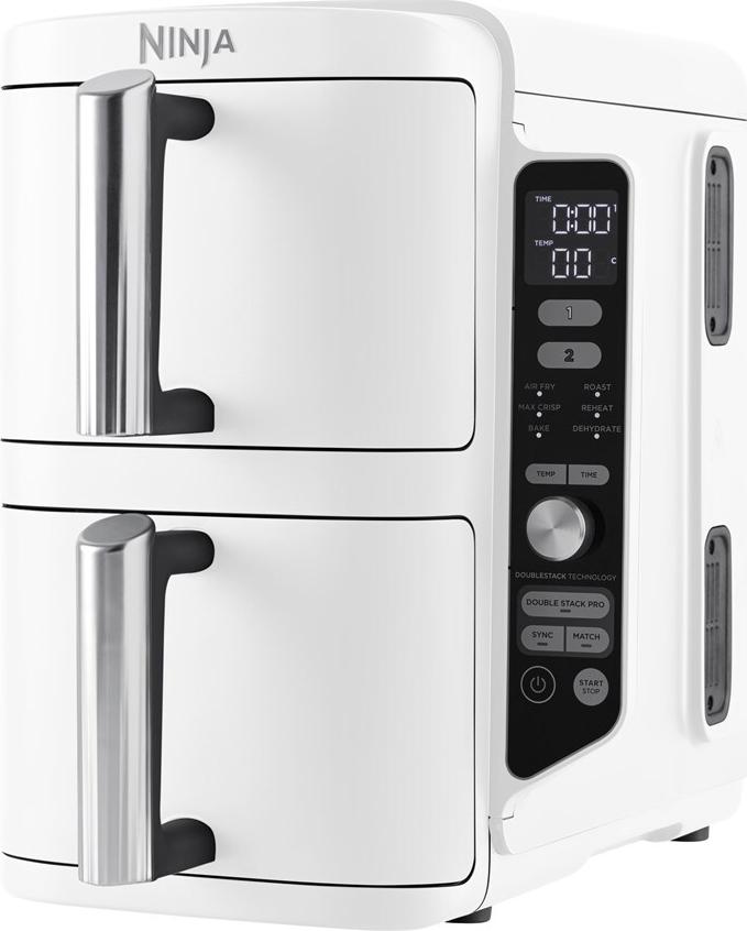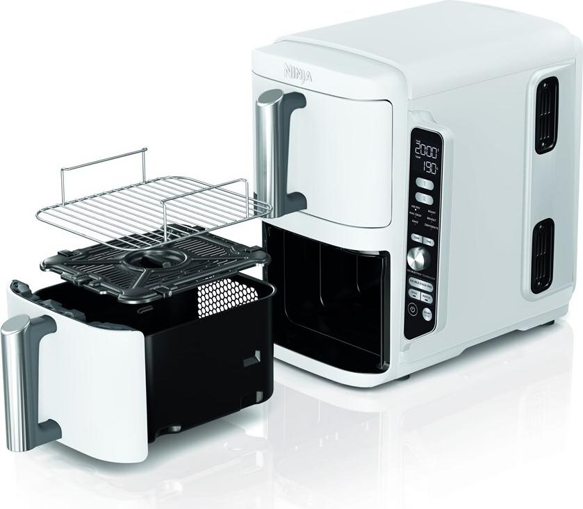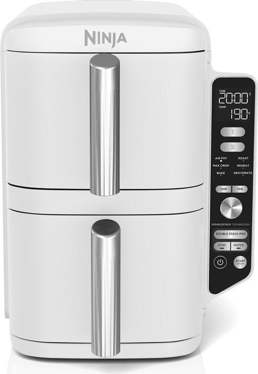 Die Ninja DoubleStack Heißluftfritteuse bietet mit ihrem Fassungsvermögen von 9,5 Litern vielseitige Zubereitungsmöglichkeiten und ermöglicht die Zubereitung von Mahlzeiten für bis zu 8 Personen. Mit einer Leistungsaufnahme von 2,47 kW ist dieses Gerät auf Effizienz und Effektivität ausgelegt und verfügt über ein digitales Display für eine einfache Navigation. Das einzigartige Design umfasst 2 herausnehmbare Körbe, sodass mehrere Komponenten einer Mahlzeit gleichzeitig zubereitet werden können. Ob zum Aufwärmen von Resten, Backen, Heißluftfrittieren oder Braten von Gemüse – mit 6 verfügbaren Programmen stehen Ihnen eine Vielzahl von Zubereitungsmöglichkeiten zur Verfügung. Die Antihaftbeschichtung sorgt für eine einfache Reinigung, während die herausnehmbaren Teile für zusätzlichen Komfort spülmaschinenfest sind. Für alle, die Wert auf gesundes Kochen legen, ist diese Heißluftfritteuse mit einem Temperaturbereich von 40 °C bis 240 °C und der Möglichkeit zum Dehydrieren eine wertvolle Ergänzung für jede Küche.