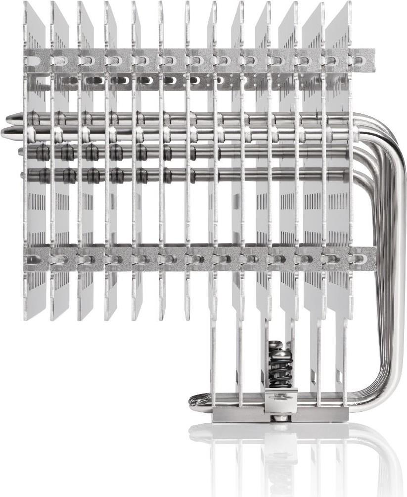 Der NH-P1 ist Noctuas erster passiver CPU-Kühler und wurde von Grund auf für den lüfterlosen Betrieb konzipiert: In Gehäusen mit guter natürlicher Konvektion kühlt er mit seinen sechs Heatpipes und den dicken, weit auseinander liegenden Kühlkörperlamellen moderne High-End-CPUs mit geringer bis mittlerer Wärmeabgabe komplett passiv. Zur weiteren Leistungssteigerung oder für semi-passive Setups, die ihre Lüfter nur bei Bedarf aufdrehen, kann der NH-P1 mit einem langsam laufenden, extrem leisen 120-mm-Lüfter ausgestattet werden.