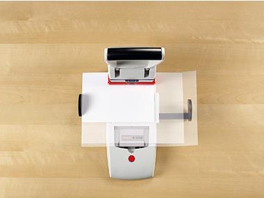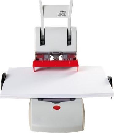 Dank seiner Hebelwirkung locht der NOVUS B 2200 bis zu 200 Blatt Standardpapier außerordentlich leichtgängig. Die 4-fach Lochung eines Papierblocks bis 200 Blatt ist dank der neuen verschiebbaren Justiereinheit sehr komfortabel. Einmal eingelegt muss das Papier nicht mehr gewendet, sondern nur verschoben werden. Durch die beiden gekoppelten Anschlagschienen ist es jetzt möglich jedes Blatt im Format von DIN A6 bis DIN A4 einfach zentriert zu lochen. Der Griffschutz garantiert höchste Sicherheit für den Anwender.