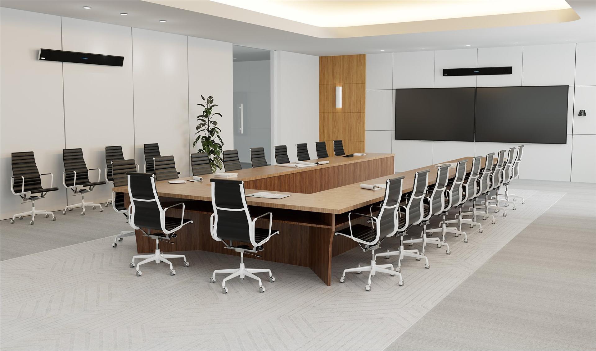 Das HDL410-System bietet professionelle AV-Leistung ohne die Kosten und die Komplexität eines maßgeschneiderten Profi-AV-Systems. Es kombiniert ein leistungsstarkes Connect-Modul mit zwei integrierten Mikrofon- und Lautsprecherleisten und bietet fortschrittliche Verarbeitung und erstklassige Funktionen für besonders große Räume bis zu 10,7 x 16,8 m (35' x 55').