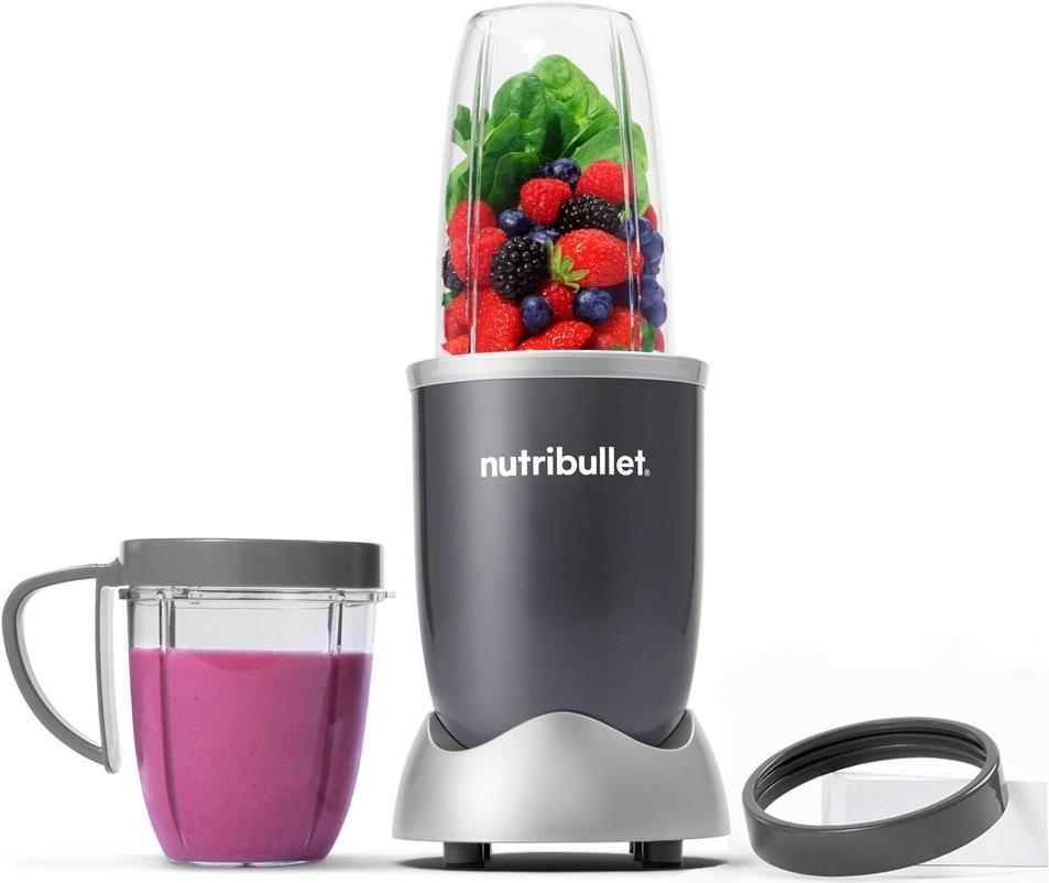 NutriBullet NB606DG. Schüsselkapazität: 0,7 l. Typ: Tischplatten-Mixer, Produktfarbe: Silber. Material Mixerschüssel: Kunststoff, Gehäusematerial: Kunststoff, Materiallgriff: Kunststoff. Leistung: 600 W, Energiequelle: AC. Breite: 139 mm, Tiefe: 139 mm, Höhe: 319 mm (0C22300024)