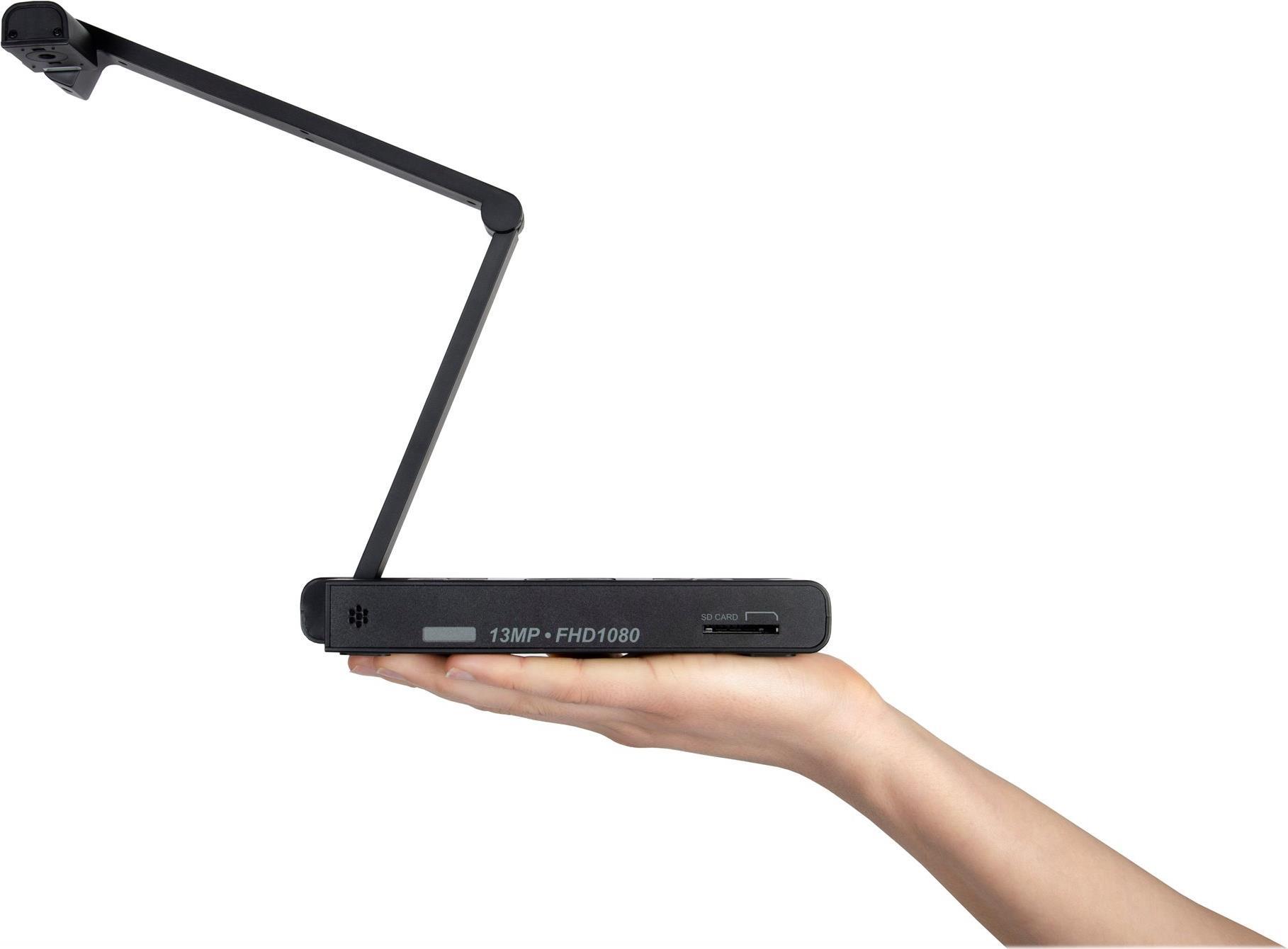 Der flexible Gelenkarm der DC455 verfügt über einen 13-Megapixel-Sensor, 10-fach optischen Zoom und 30 Frames-per-Second (bei voller Auflösung) für atemberaubende Bildqualität und Leistung. So können Sie Details sehen, die für das menschliche Auge oft nicht sichtbar sind. Machen Sie Fotos oder Videos mit der Kamerafunktion und integrieren Sie diese ganz einfach in zukünftige Präsentationen.Erstellen Sie mehr fesselnde Unterrichtsinhalte, indem Sie mit der DC455-Dokumentenkamera Bilder, Videos und Audio einfach erfassen. Sie können sogar ein Video von einem wissenschaftlichen Experiment mit der Dokumentenkamera machen, es auf Ihrem PC/Laptop per USB oder auf einer SD-Karte speichern und es für die nächste Unterrichtsstunde verwenden. Die Schüler können ihre Vorführungen während der Präsentationen aufzeichnen, um später darauf zurückzugreifen.Produkttext[/head]Der flexible Gelenkarm der DC455 verfügt über einen 13-Megapixel-SensorDer neue flexible Gelenkarm der DC455 verfügt über einen 13-Megapixel-Sensor, 8-fach digitalen Zoom und 30 Frames-per-Second (bei voller Auflösung) für atemberaubende Bildqualität und Leistung. So können Sie Details sehen, die für das menschliche Auge oft nicht sichtbar sind. Machen Sie Fotos oder Videos mit der Kamerafunktion und integrieren Sie diese ganz einfach in zukünftige Präsentationen.Erstellen Sie mehr fesselnde Unterrichtsinhalte, indem Sie mit der DC455-Dokumentenkamera Bilder, Videos und Audio einfach erfassen. Sie können sogar ein Video von einem wissenschaftlichen Experiment mit der Dokumentenkamera machen, es auf Ihrem PC/Laptop per USB oder auf einer SD-Karte speichern und es für die nächste Unterrichtsstunde verwenden. Die Schüler können ihre Vorführungen während der Präsentationen aufzeichnen, um später darauf zurückzugreifen.Einfach zu bedienenSchließen Sie einfach über einen der verfügbaren Verbindungsanschlüsse einen beliebigen PC, Projektor oder interaktiven Flachbildschirm an, und schon können Sie loslegen. An der Basis der Kamera stehen einfache Bedienelemente zur Verfügung, so dass jede Funktion nur einen Knopfdruck entfernt ist.Verwandeln Sie Physisches in DigitalesDie gemeinsame Nutzung von Echtzeit-Bilderfassung oder das Speichern von Bild- und Videoinhalten für später, könnte nicht einfacher sein. Optomas Visualisierer transportieren das Physische in eine digitale Umgebung, egal ob es sich um ein Lehrbuch oder ein 3D-Objekt handelt. Sehen Sie Details, die für das menschliche Auge nicht sichtbar sind und zeigen Sie diese ihrem Publikum.Flexibler GelenkarmDank des äußerst flexiblen Gelenkarms lässt sie sich perfekt ausrichten, zwischen einzelnen Räumen hin und her bewegen und verstauen. Sie lässt sich perfekt ausrichten und anpassen.Sociale Distanz wahrenWährend dieser herausfordernden Zeiten mit Covid 19 stellen die Visualisierer von Optoma die Nähe einer Hands-on-Präsentation nach, während die soziale Distanz gewahrt bleibt. Kombiniert mit großformatigen Bildschirmen, kann ein größeres Publikum angesprochen werden, als normalerweise möglich.Eingebautes MikrofonDank des eingebauten Mikrofons können die Visualisierer von Optoma auch als Premium-Webcam eingesetzt werden. Perfekt, wenn eine Kombination aus lokalen und externen Zuhörern teilnimmt.Integrierte AnmerkungswerkzeugeDie mitgelieferte intelligente Software ermöglicht es dem Präsentator, ein Bild zu erfassen und mit Anmerkungen zu versehen. In Kombination mit einem interaktiven Flachbildschirm können Sie somit Live-Anmerkungen eingeben, für eine wirklich dynamische und ansprechende PräsentationBeeindruckende BildqualitätPräsentieren Sie kleinste Objekte mit mehr Details dank modernster Objektiv- und Sensortechnik. Der leistungsstarke Zoom verstärkt dies zusätzlich und liefert unglaublich klare Details, die für das menschliche Auge oft nicht sichtbar sind.Real-Time HDKonvertieren Sie Ihre Echtzeit-Inhalte in hochwertiges Multimedia-Material mit reibungsloser Videowiedergabe bei 30 Bildern pro Sekunde.HDMI & VGA In/OutAnschluss an praktisch jeden PC oder Großbildschirm. Darüber hinaus ermöglichen die HDMI- und VGA-Eingänge für Passthrough eine echte Flexibilität bei der gemeinsamen Nutzung aller Geräte.3 HelligkeitsstufenDie in den Kopf integrierte umweltfreundliche LED-Beleuchtung umfasst drei Helligkeitseinstellungen, um bei Bedarf zusätzliche Beleuchtung zu erzeugen. Perfekt für jede Umgebung, egal wie dunkel oder hell sie ist.Problemlose AufbewahrenDank des kompakten Designs, können die Dokumentenkameras von Optoma einfach zusammengeklappt und aufbewahrt werden, wenn sie nicht mehr in Gebrauch sind.[head]Hauptmerkmale