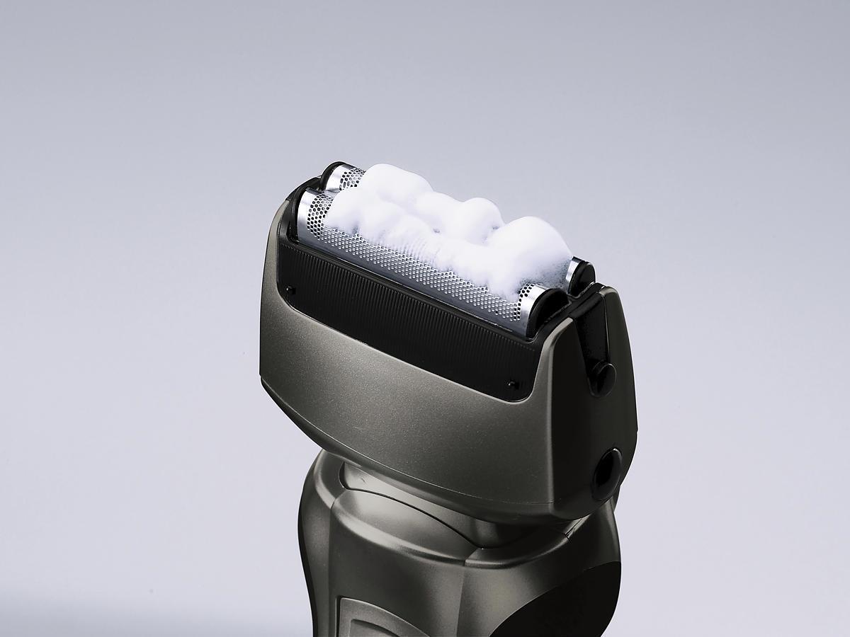 Der Nass/Trocken-Rasierer ES-RW33 mit dem 2-fach-Schersystem, einem in 8 Richtungen flexiblen Scherkopf und feinstpolierten 30° Klingen sorgt für eine schnelle und einfache Rasur.