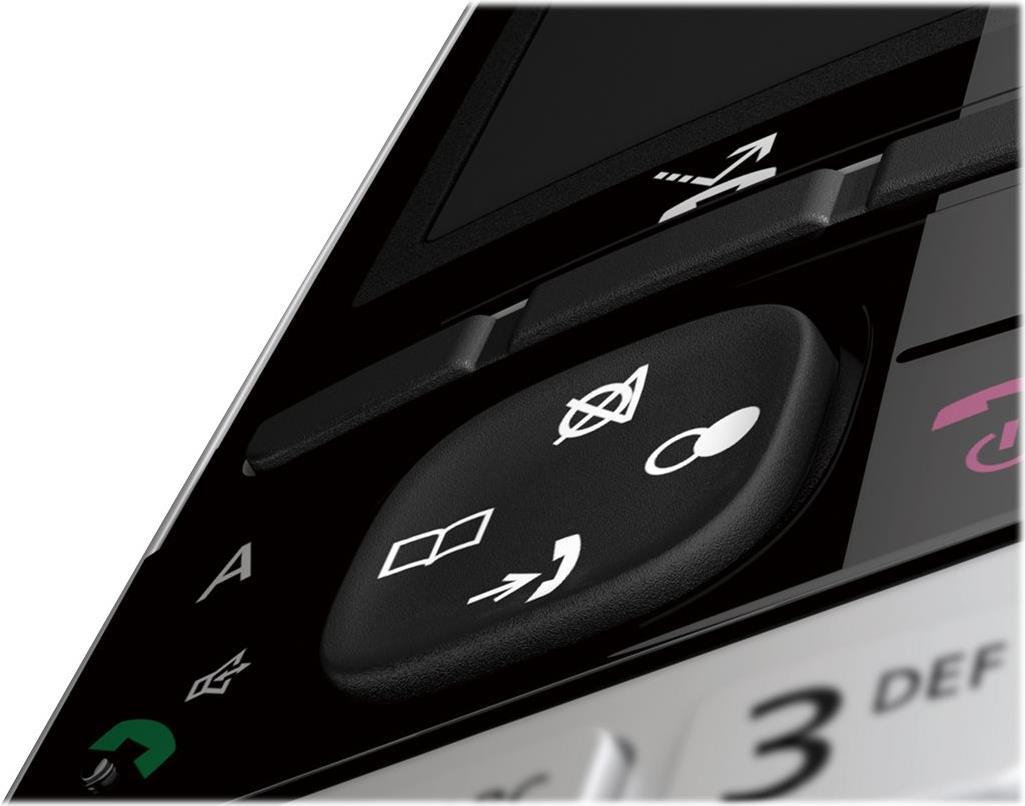 Das Schnurlostelefon KX-TGH720 mit Farbdisplay und Anrufbeantworter überzeugt mit übersichtlichem und schlichtem Design, sowie einer neuartigen Rufnummernsperre, die auch Wählautomaten erfasst. Es können bis zu 1.000 unerwünschter Rufnummern sehr einfach gespeichert werden.