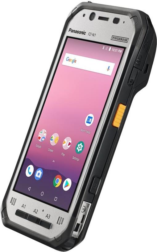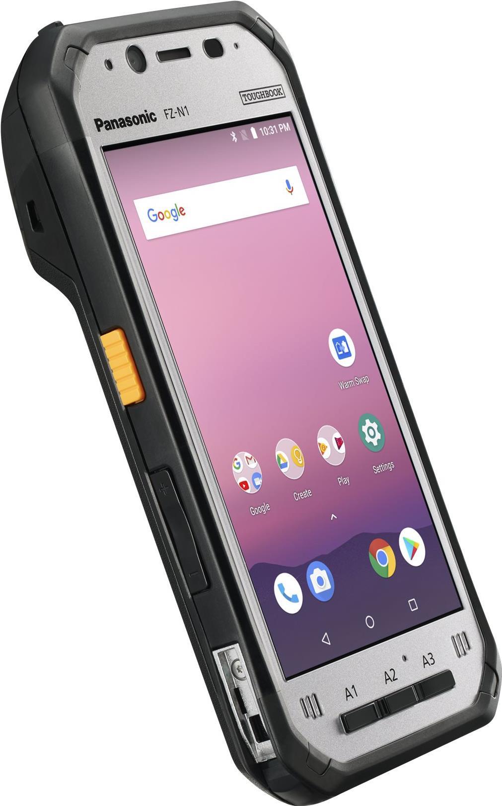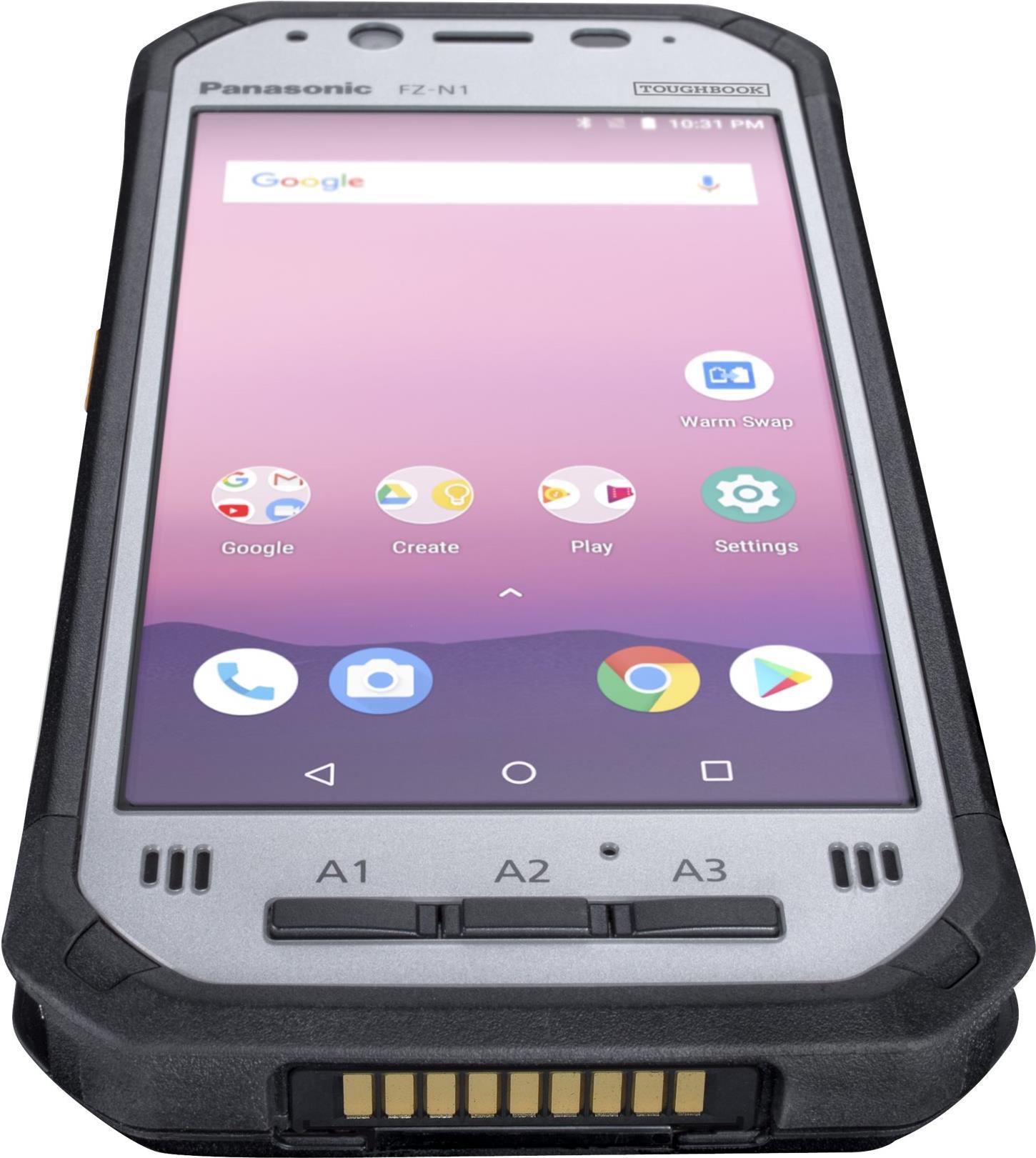 Panasonic TOUGHBOOK N1, Flat Model, USB, BT, WLAN, 4G, NFC, GPS, warm-swap, Kit (USB), Android Mobiles Datenerfassungsgerät, GPS, Kamera (8MP), Front-Kamera (5MP), warm swappable, Helligkeit: 500cd, 11,9cm (4.7"), USB (micro-USB), Bluetooth, WLAN (802.11ac), Audio, 4G (LTE), NFC, Micro SD-Slot, Auflösung: 1280x720 Pixel, Qualcomm Octa Core, 2,2GHz, RAM: 4GB, Flash: 64GB, Android (11), Schutzart: IP68, inkl.: Kabel (USB, Micro), USB-Aufladegerät, Akku (FZ-N1LFSBZP3)