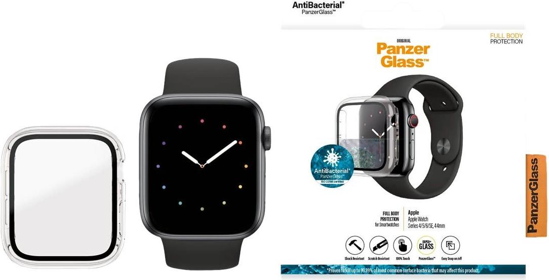 Der PanzerGlass Full Body Displayschutz für Apple Watch Series 4/5/6/SE (44 mm) überzeugt durch seine kristallklare Abdeckung des gesamten Uhren-Displays, ohne die Berührungsempfindlichkeit der Smartwatch zu beeinträchtigen. Das Glas ist stoß- und wasserfest und mit einer oleophoben Schicht versehen, die nicht nur antibakteriell ist, sondern auch Fingerabdrücke verhindert sowie Staub, Schmutz und Feuchtigkeit absorbiert.