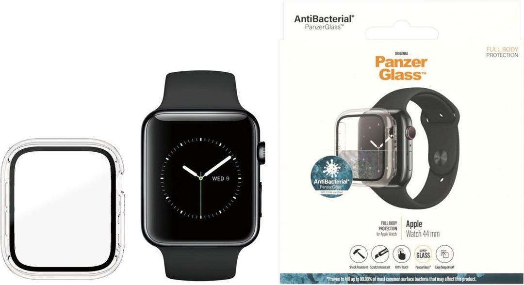 PanzerGlass - Bildschirmschutz für Smartwatch - full body - Glas - klar - Rahmenfarbe schwarz - für Apple Watch (44 mm) (3643)