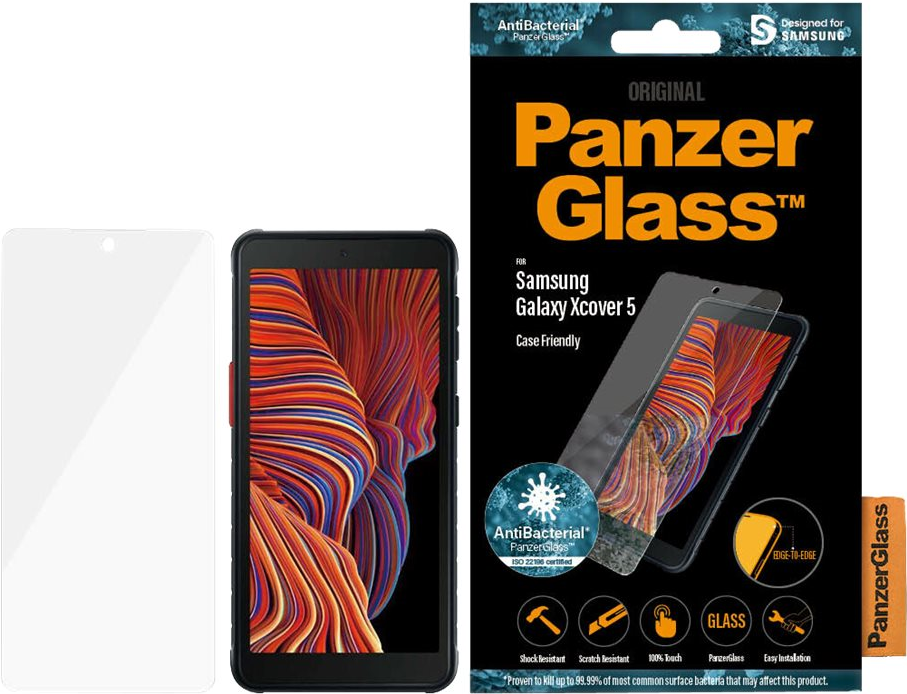 Der PanzerGlass Displayschutz für Samsung Galaxy Xcover 5 mit antibakterieller Wirkung hat die gleichen Eigenschaften wie das Original PanzerGlass und schützt Ihren Bildschirm außerdem vor Kratzern und Stößen.