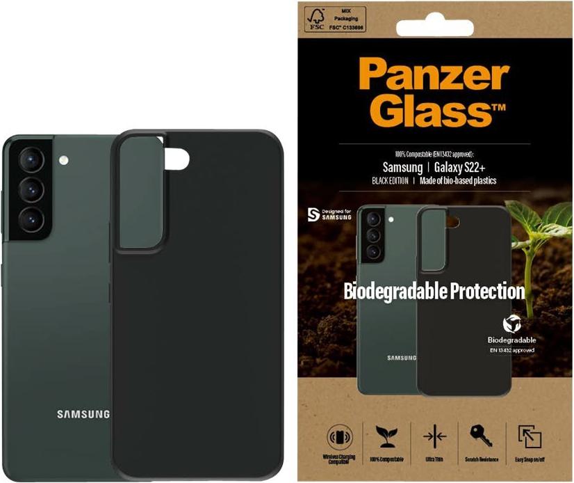 PanzerGlass - Hintere Abdeckung für Mobiltelefon - Bio-Kunststoff - Schwarz - für Samsung Galaxy S22+ (0375)