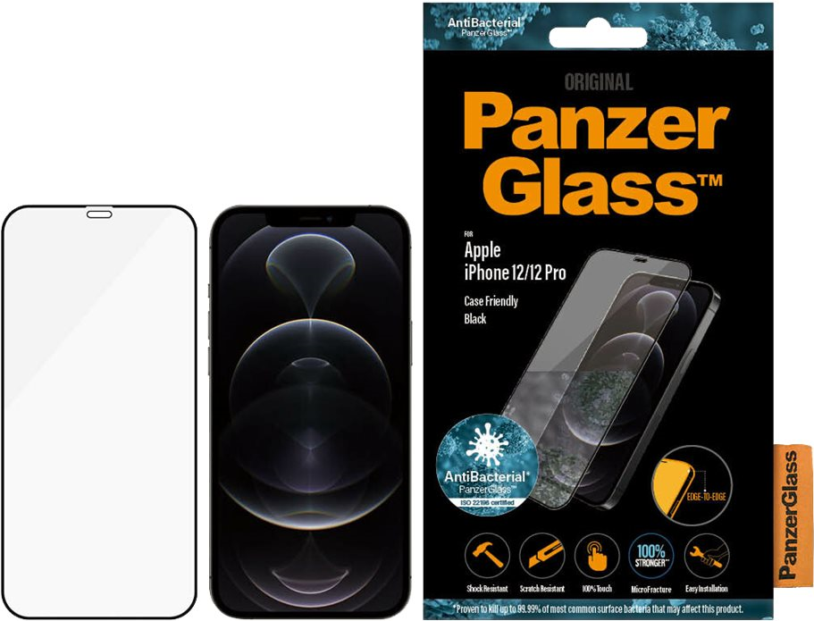 PanzerGlass - Bildschirmschutz für Handy - Glas - 6.1" - Rahmenfarbe schwarz - für Apple iPhone 12, 12 Pro (2711)