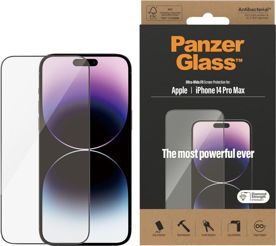 PanzerGlass - Bildschirmschutz für Handy - ultrabreite Passform - Glas - Rahmenfarbe schwarz - für Apple iPhone 14 Pro Max (2774)