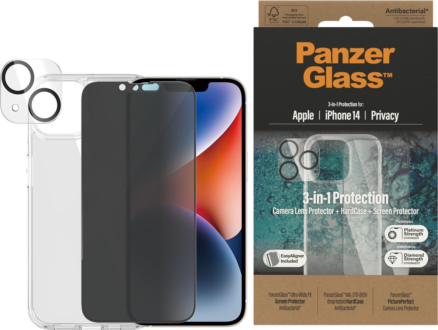 PanzerGlass - 3-in-1 Schutzpacket - Schutzhülle für Mobiltelefon - privacy - Thermoplastisches Polyurethan (TPU) - für Apple iPhone 14 (B0401+P2783)