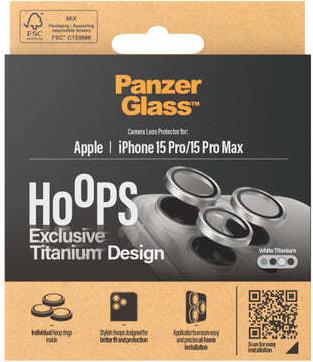 PanzerGlass Hoops iPhone 15 Pro Pro Max White Titanium - Kein "Oops!" mit Hoops! Der PanzerGlass Hoops Kameraobjektiv-Schutz bewahrt Ihre Kameraobjektive vor versehentlichem Herunterfallen auf steinharten Böden - Stößen gegen scharfe Ecken und dem kratzenden Kuss von Schlüsseln in Ihrer Tasche. Die schlanken - profiloptischen Ringe sind mit kratz- und stoßfestem Glas sowie einem schwarzen Aluminiumrahmen ausgestattet - der Ihre Objektive schützt und gleichzeitig toll aussieht. Und wenn Sie sich Gedanken über Bildverzerrungen machen - können Sie beruhigt sein: Hoops beeinträchtigen weder die Klarheit Ihrer Objektive noch die Qualität Ihrer Fotos - sie geben Ihnen einfach ein wenig mehr Sicherheit. Die optischen Ringe sind für eine einfache Anwendung und perfekte Passform konzipiert. Sie sind entlang der Kanten mit einem Silikonkleber ausgestattet und werden mit einem einfach zu verwendenden Applikator geliefert - der die Installation kinderleicht werden lässt! Und denken Sie daran: Sobald Hoops installiert sind - werden Sie nie wieder die Angst haben - Ihr Telefon mit der Kamera voran auf den Boden fallen zu sehen. Dies mag zwar nicht passieren - aber wenn doch - werden Sie es bereuen - nicht auf "In den Warenkorb legen" geklickt zu haben. Hoops schützen und verlängern die Lebensdauer Ihres Telefons - damit Sie es eines Tages an jemanden weitergeben können - der es genauso lieben wird wie Sie. Es ist der neue Kreislauf des Telefonlebens. > Highlights- Schutz für die Kameraobjektive Ihres Smartphones- Schlanke Profilringe - die für bessere Passf (1197)