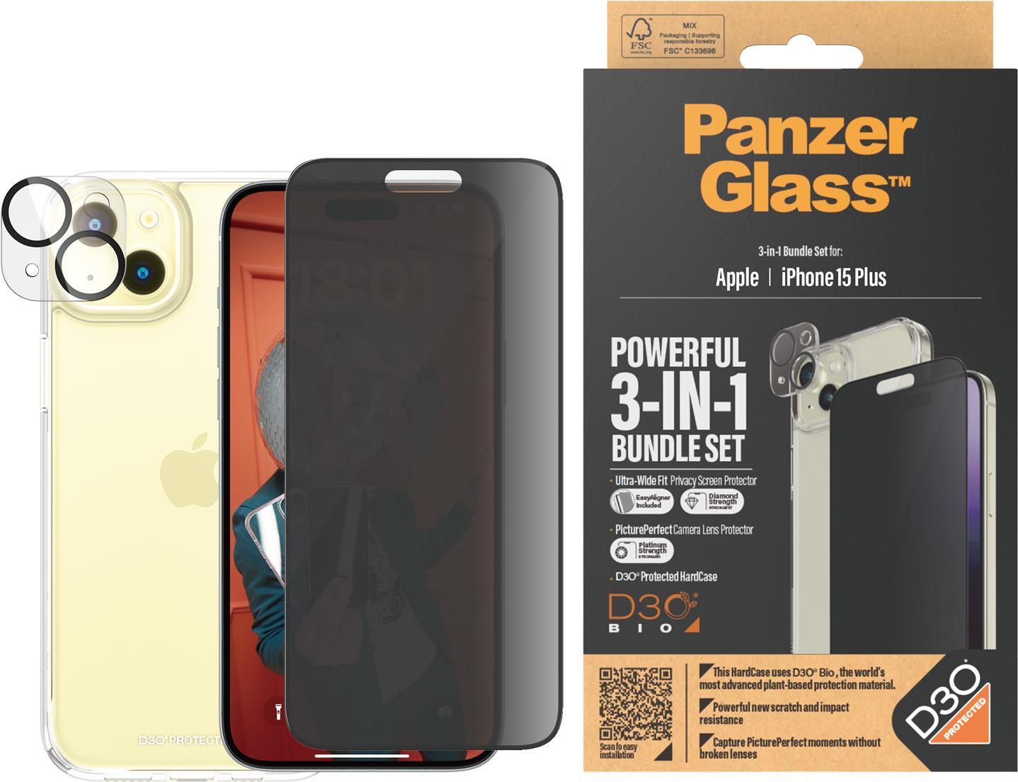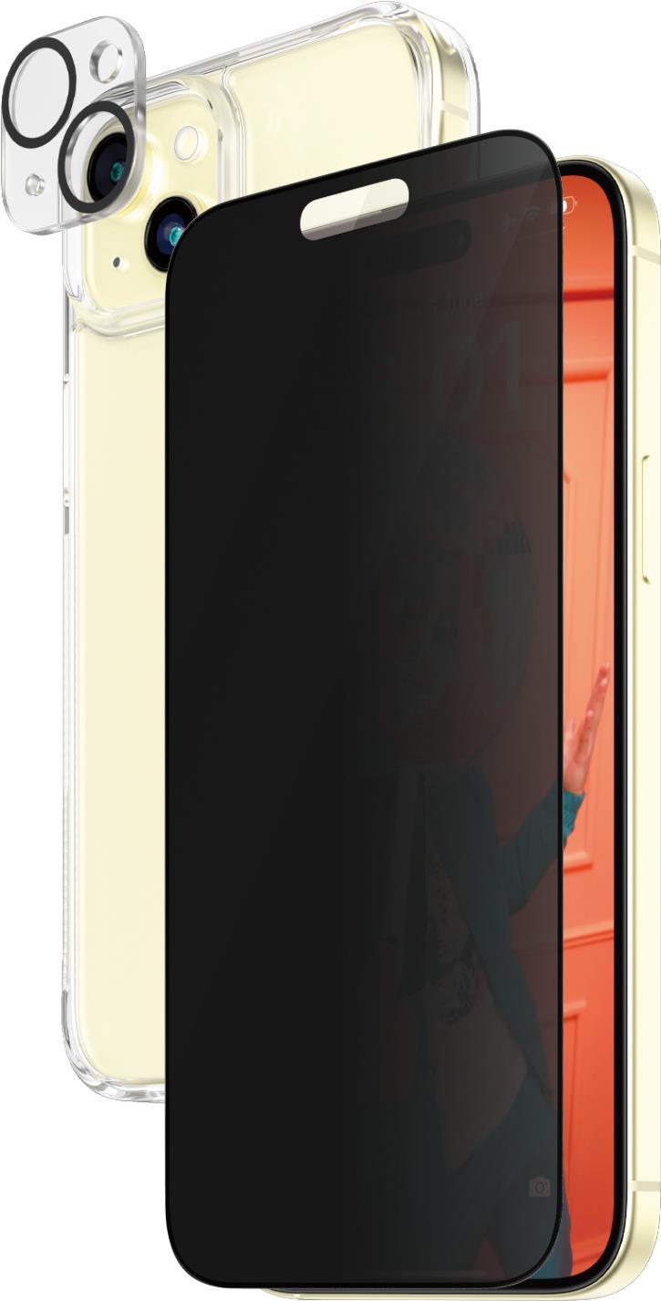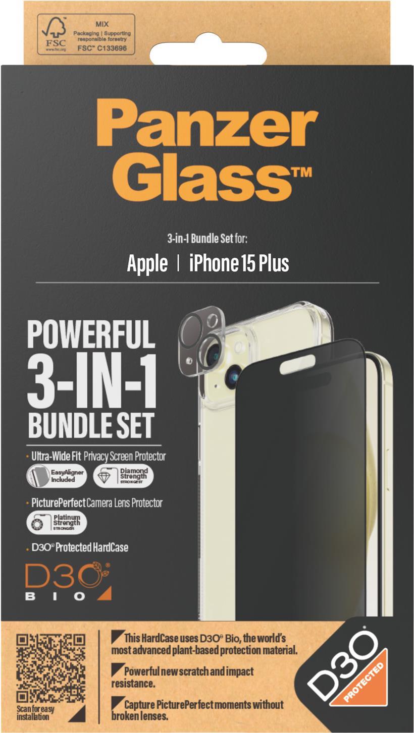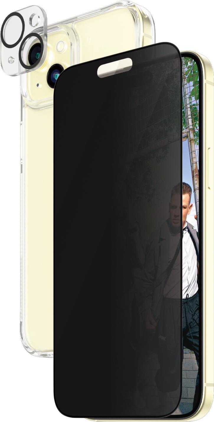 PanzerGlass Privacy - 3-in-1 Pack - Schutzkit für Display / Objektiv / Rückseite für Handy - Glas - mit Sichtschutzfilter - Rahmenfarbe schwarz - für Apple iPhone 15 Plus (B1174+P2811)