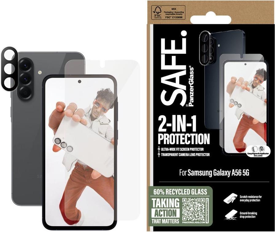 Das SAFE. by PanzerGlass Bildschirm- und Linsenschutz-Set bietet eine praktische Lösung zum Schutz von Mobiltelefonen. Dieses vielseitige 2-in-1-Paket enthält einen Bildschirmschutz aus Glas und einen Linsenschutz, die beide mit einer ultrabreiten Passform für eine einfache Anbringung mit dem mitgelieferten EasyAligner ausgestattet sind. Dieses Produkt aus strapazierfähigem Hartglas und 100 % recycelten Materialien gewährleistet Nachhaltigkeit und schützt gleichzeitig vor Kratzern, Schmutz und Fingerabdrücken.