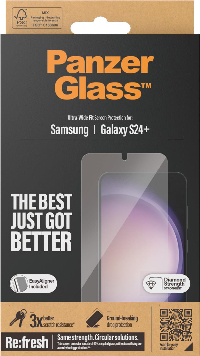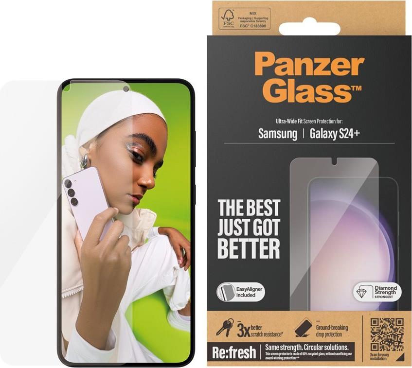 PanzerGlass - Bildschirmschutz für Handy - ultrabreite Passform mit EasyAligner - Glas - für Samsung Galaxy S24+ (7351)