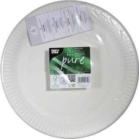 PAPSTAR Papp-Teller "pure" rund, 290 mm, weiß, 50er aus 100% Frischfaserkarton, lebensmittelecht, kompostierbar, - 1 Stück (11740)