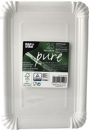 PAPSTAR Papp-Teller "pure" eckig, 165 x 230 mm, weiß, 25er aus 100% Frischfaserkarton, lebensmittelecht, kompostierbar - 1 Stück (81199)