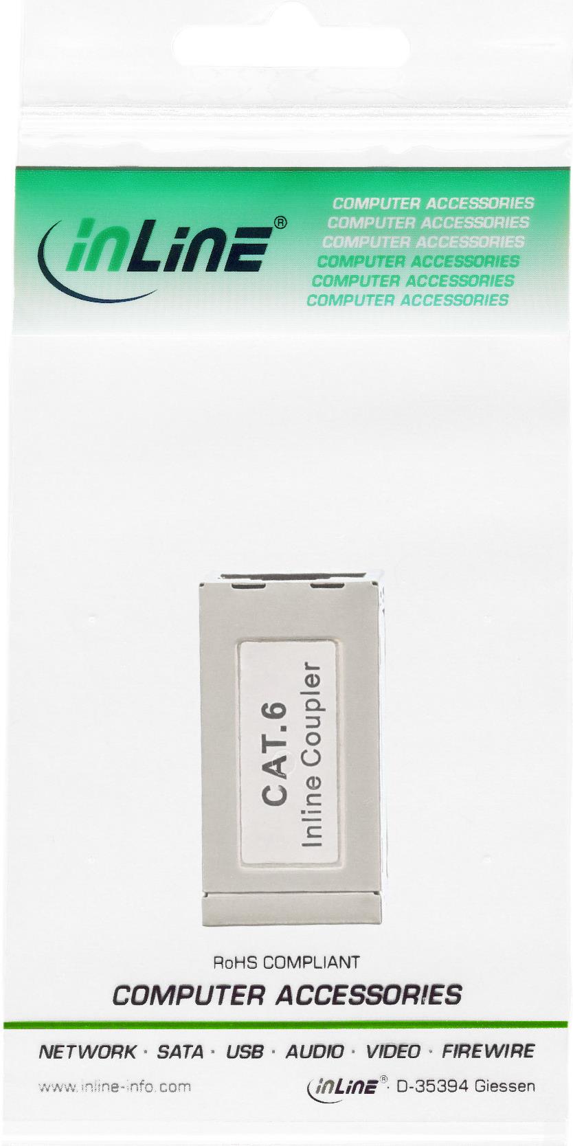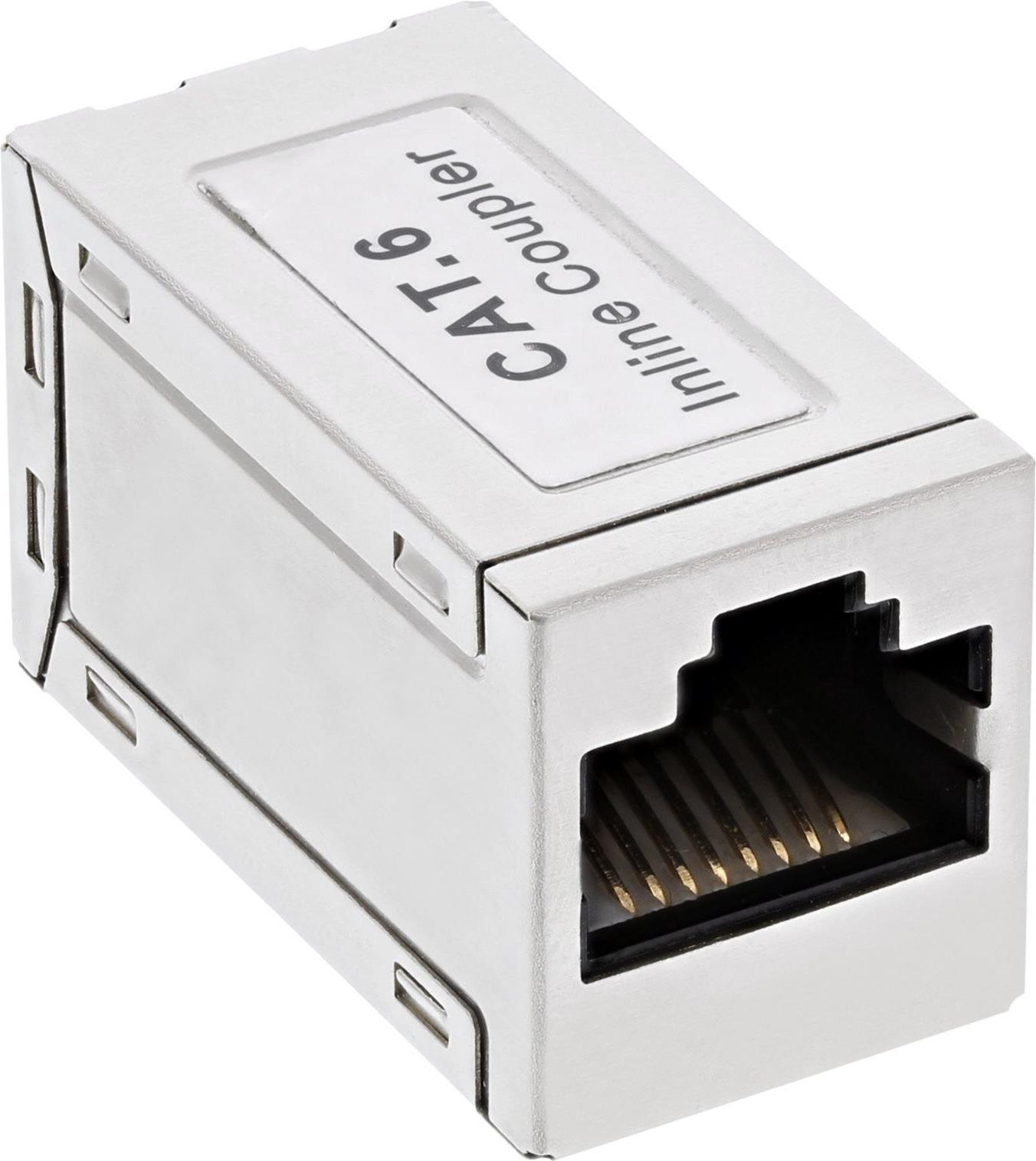 InLine® Patchkabelkupplung Metall Cat.6, 2x RJ45 Buchse, geschirmt• Zum Verbinden von 2 Patchkabeln• 2x RJ45 Buchse• Metallgehäuse• Cat. 6 geschirmt• Belegung 1:1Produkttext[/head]zum Verbinden von 2 Patchkabeln.2x RJ45 Buchse.Metallgehäuse.Cat. 6 geschirmt.Belegung 1:1.[head]Hauptmerkmale