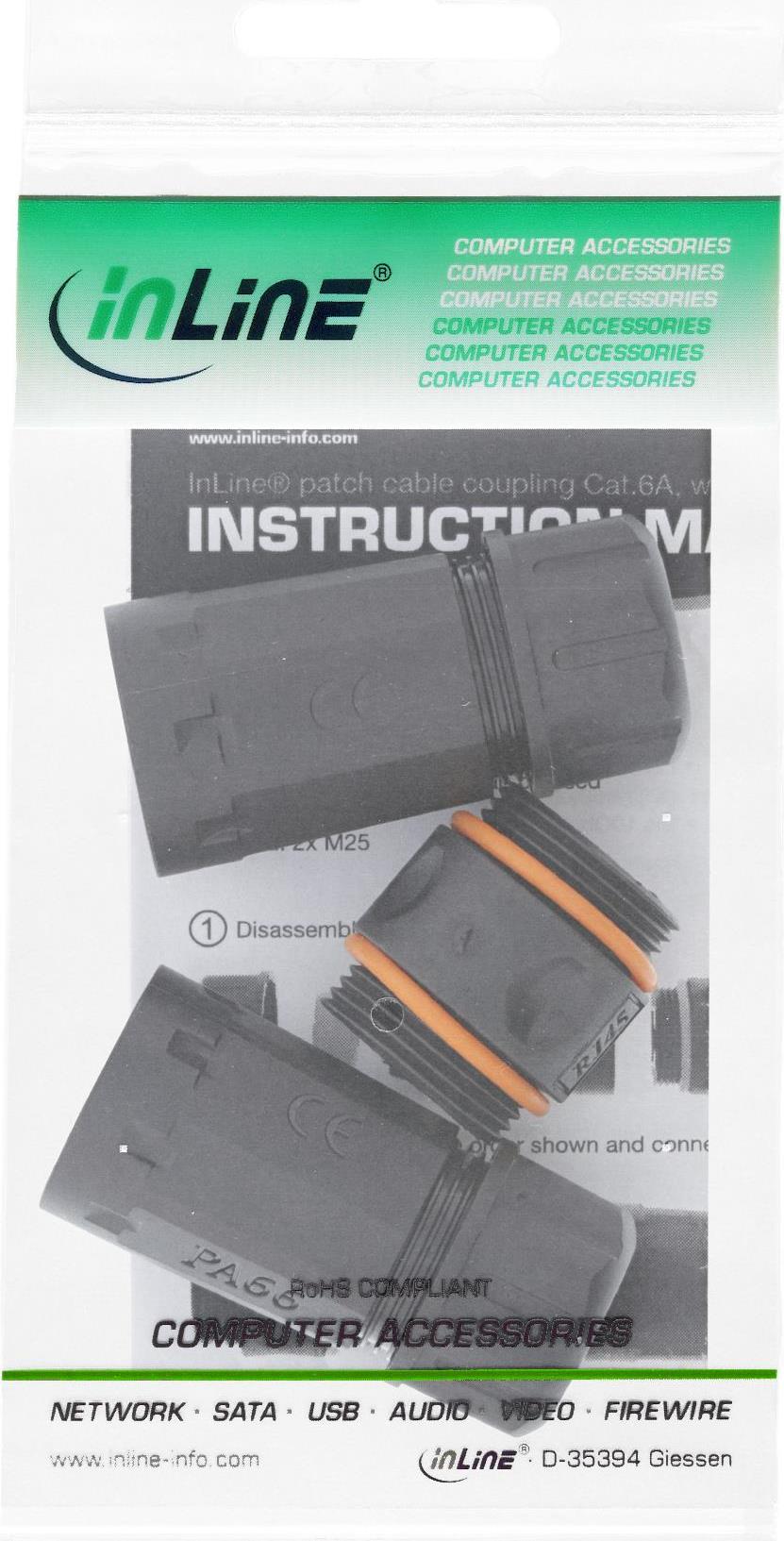 InLine Patchkabelkupplung Cat.6A - wasserdicht IP68 - 2x RJ45 Buchse - geschirmt (69990V)