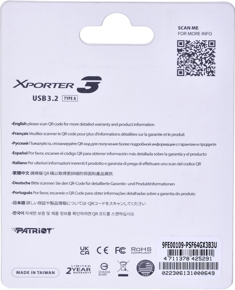 Patriot Memory Xporter 3 USB-Stick 64 GB USB Typ-A 3.2 Gen 1 (3.1 Gen 1) Schwarz (PSF64GX3B3U)