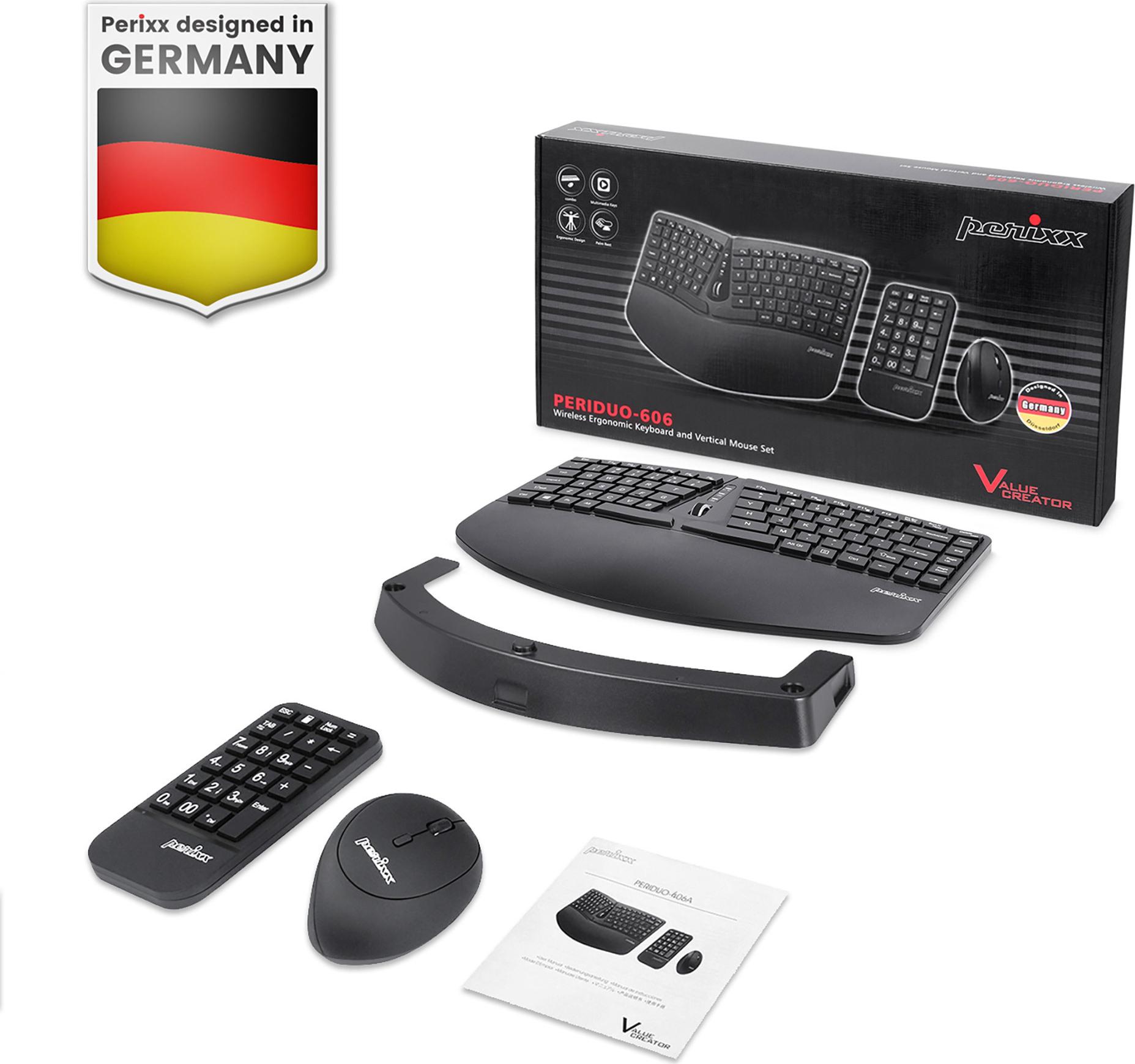 Perixx PERIDUO-606A Tastatur Maus enthalten RF Wireless Deutsch Schwarz (PERIDUO-606A DE)