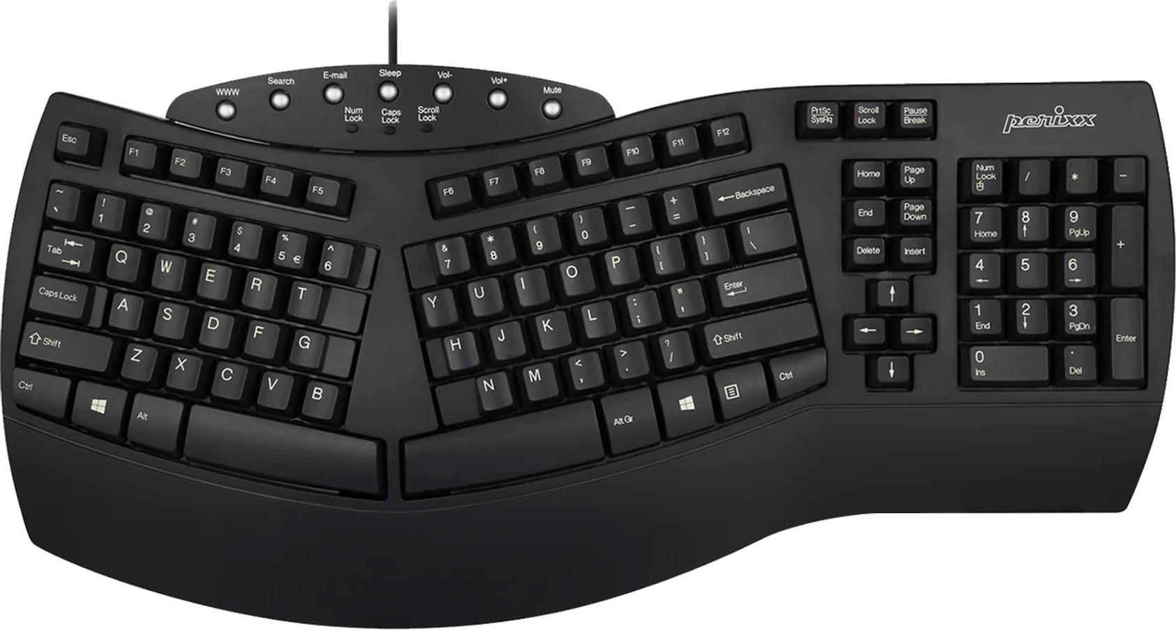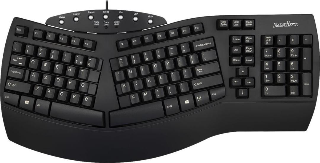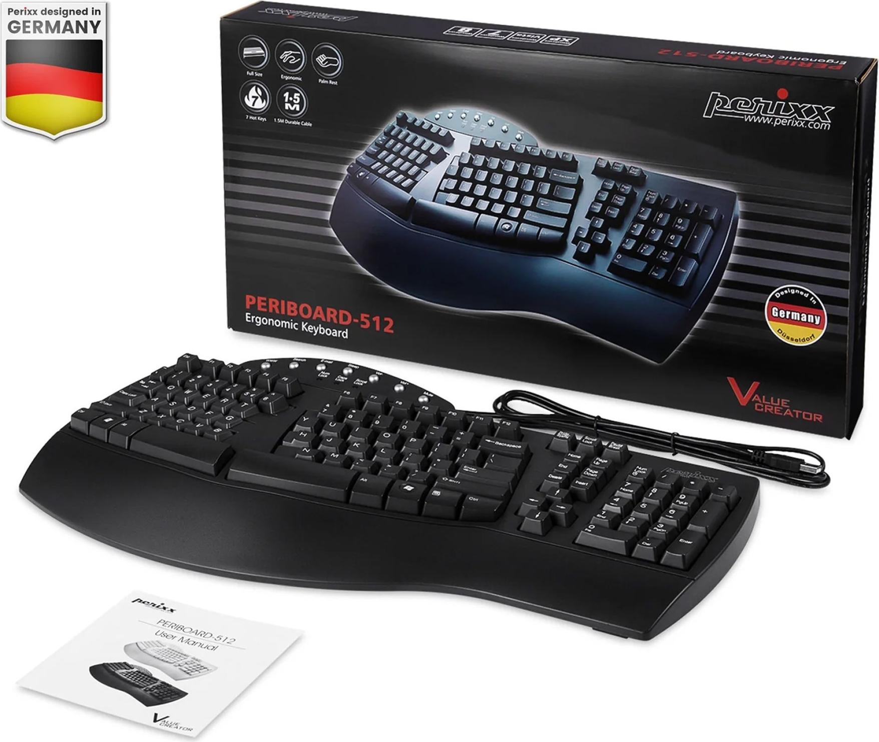 Perixx Keyboard USB PERIBOARD-512 US black ergonomic (PERIBOARD-512 US Schwarz)