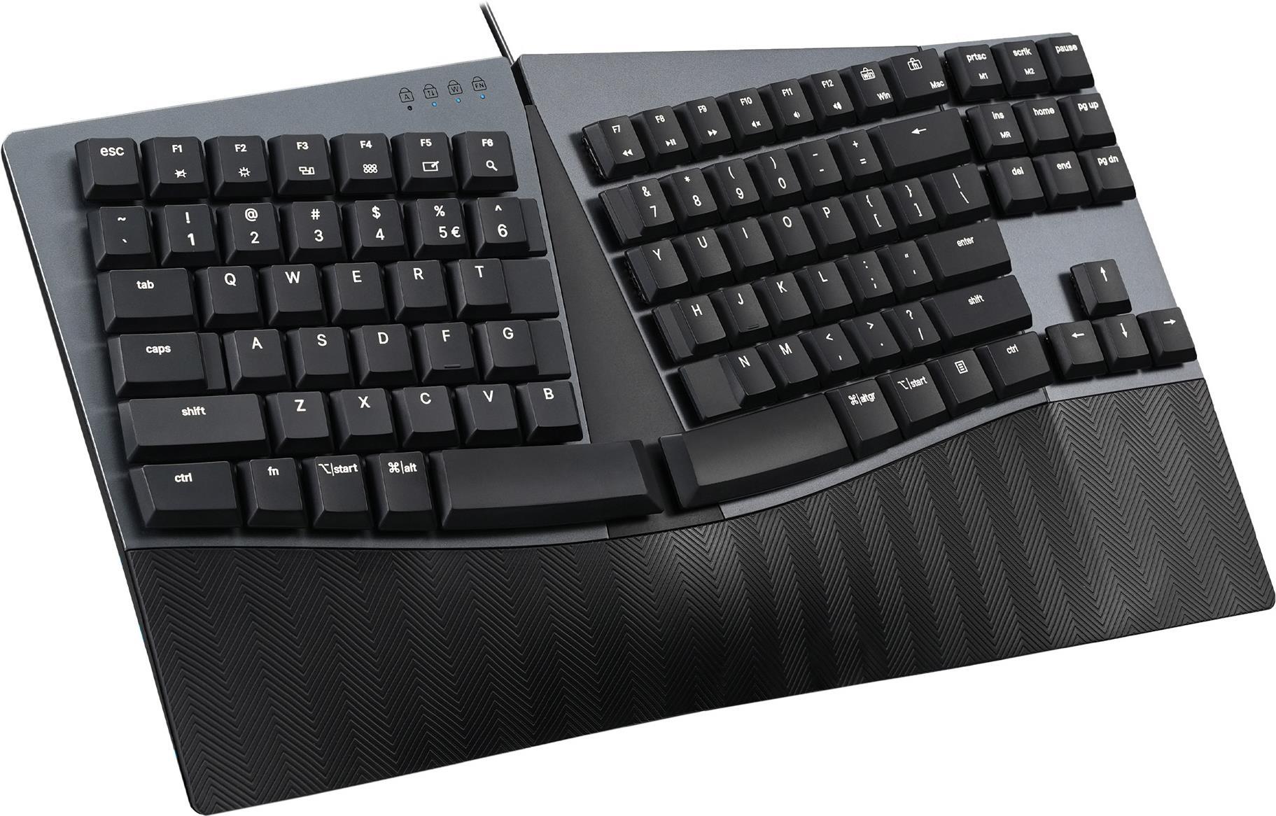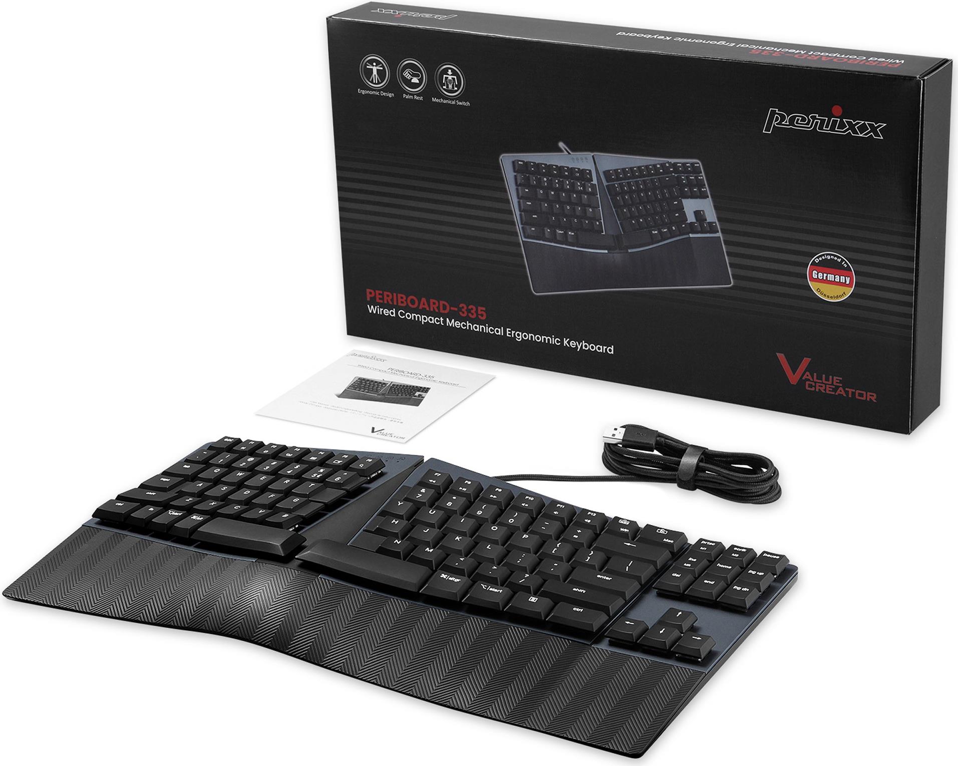 Perixx PERIBOARD-335 DE BR, Kabelgebundene ergonomische mechanische kompakte Tastatur - flache braune taktile Schalter (PERIBOARD-335 DE BR)