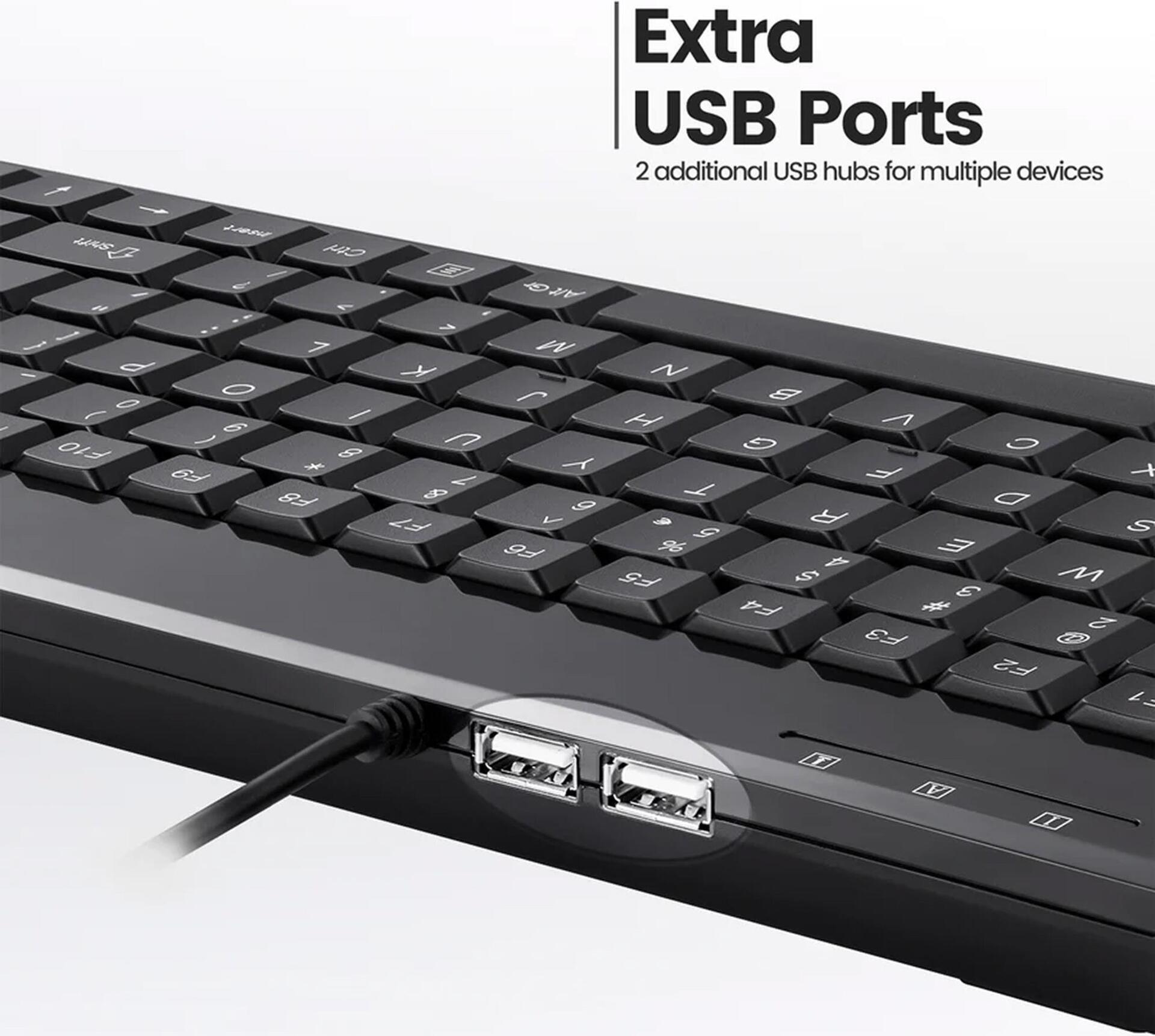 Perixx PERIBOARD-409 H, US, Mini USB-Tastatur, 2 Hubs, schwarz (US-Layout) (PERIBOARD-409 H US)