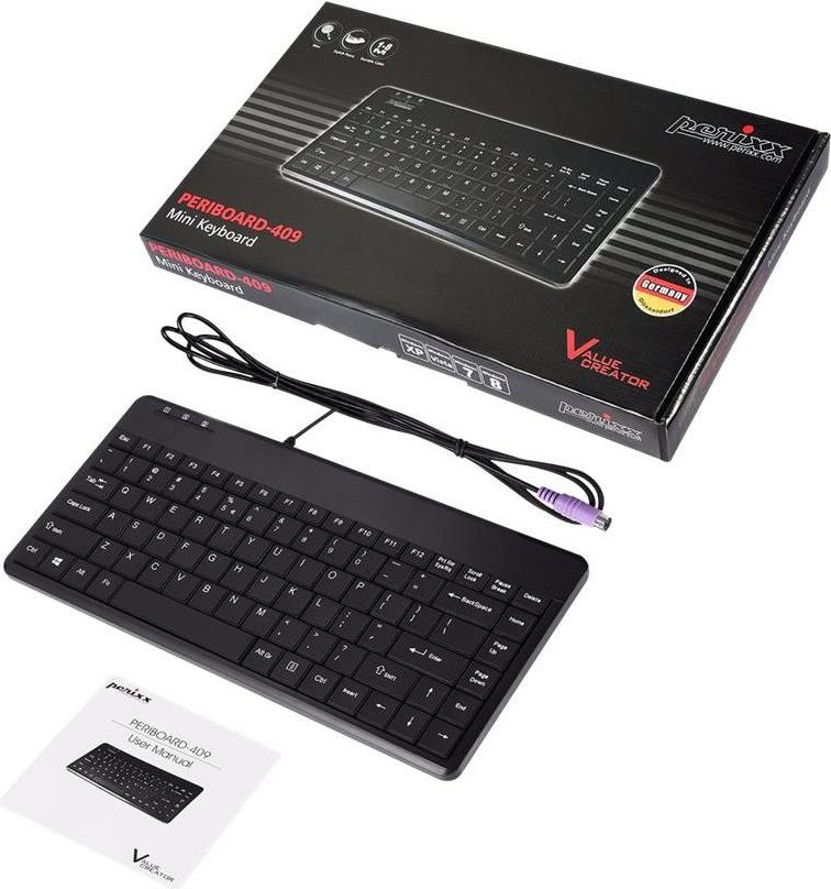 Perixx PERIBOARD-409 P, DE, Mini PS/2-Tastautur, 2 Hubs, schwarz (PERIBOARD-409 P)