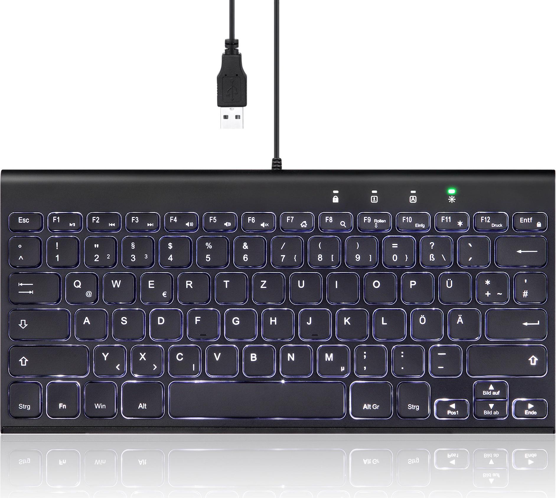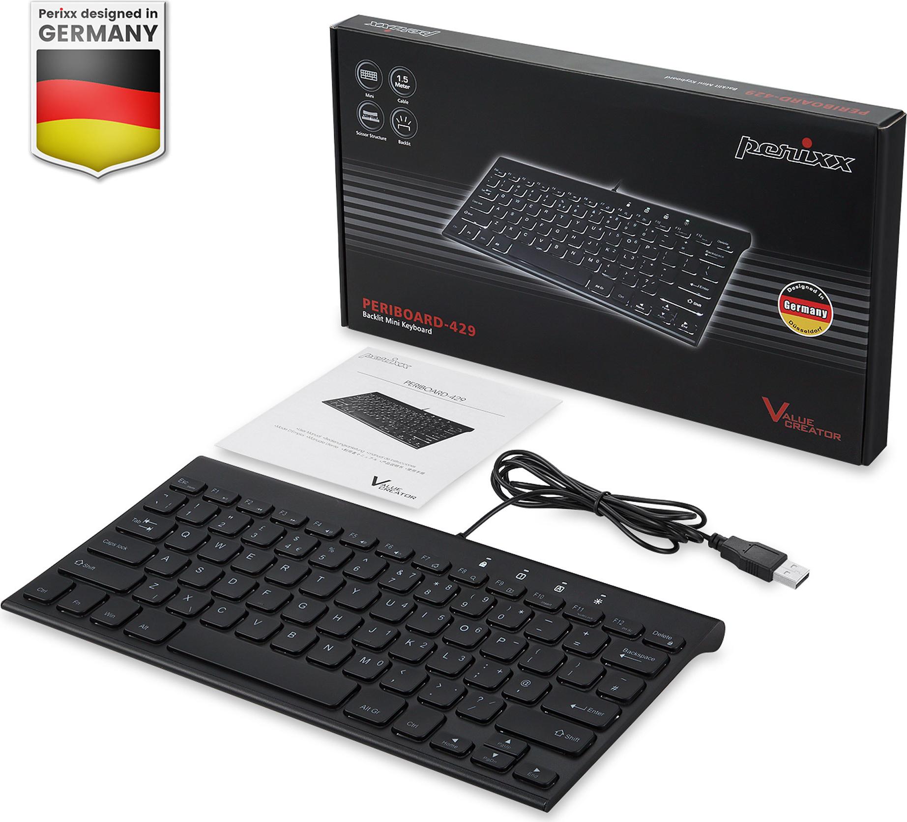 • Perixx PERIBOARD-429 DE kabelgebunden USB Mini Tastatur mit Hintergrundbeleuchtung (57150N)