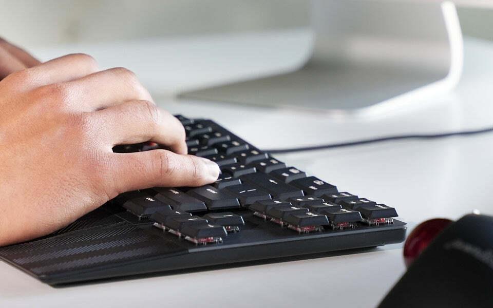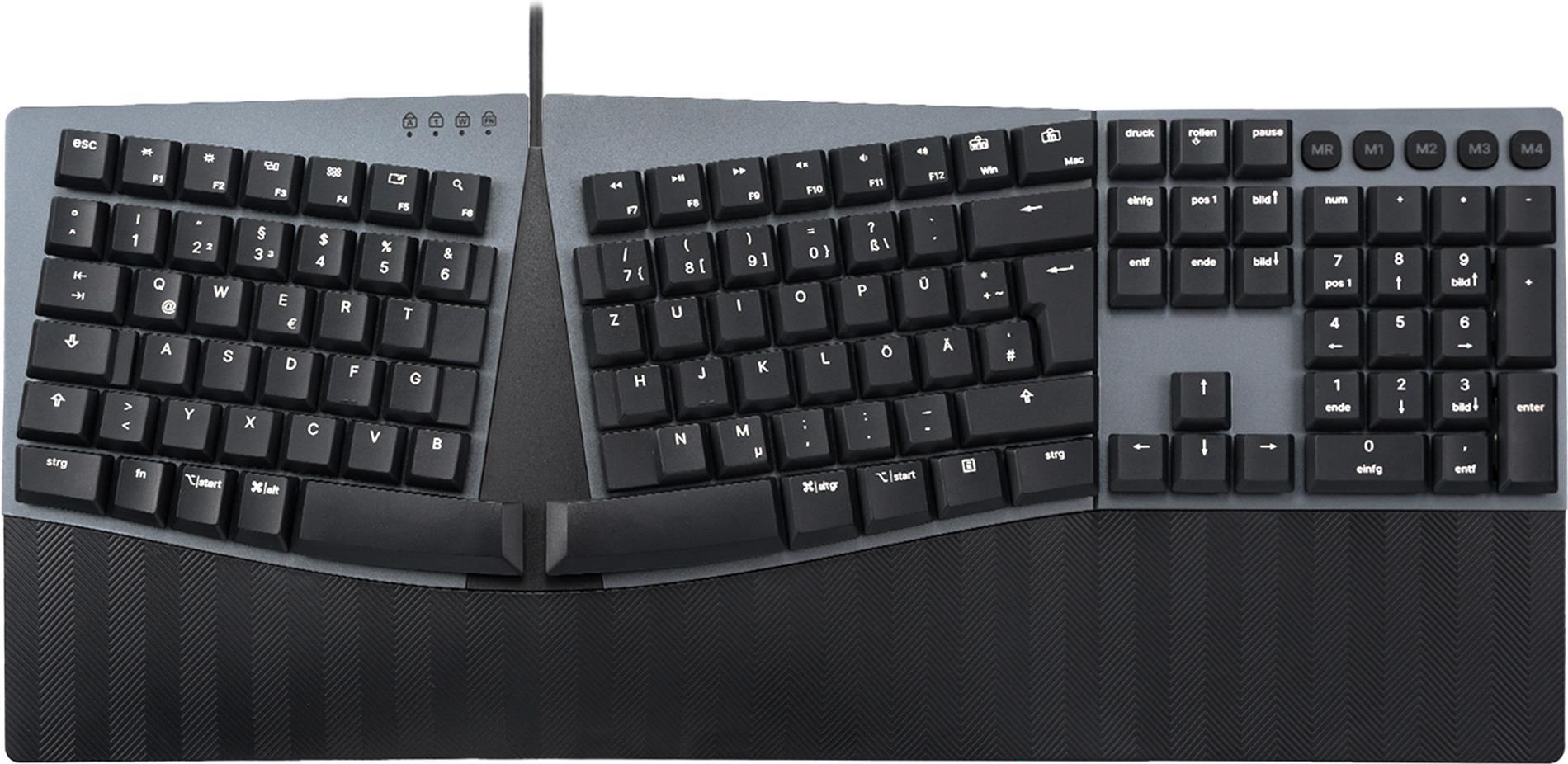 Ergonomisches Design für optimalen Komfort.Unsere mechanische Tastatur verfügt über ein geteiltes Tastenfeld und ein geschwungenes Design, das eine gesündere Haltung fördert, indem es die natürliche Positionierung ...